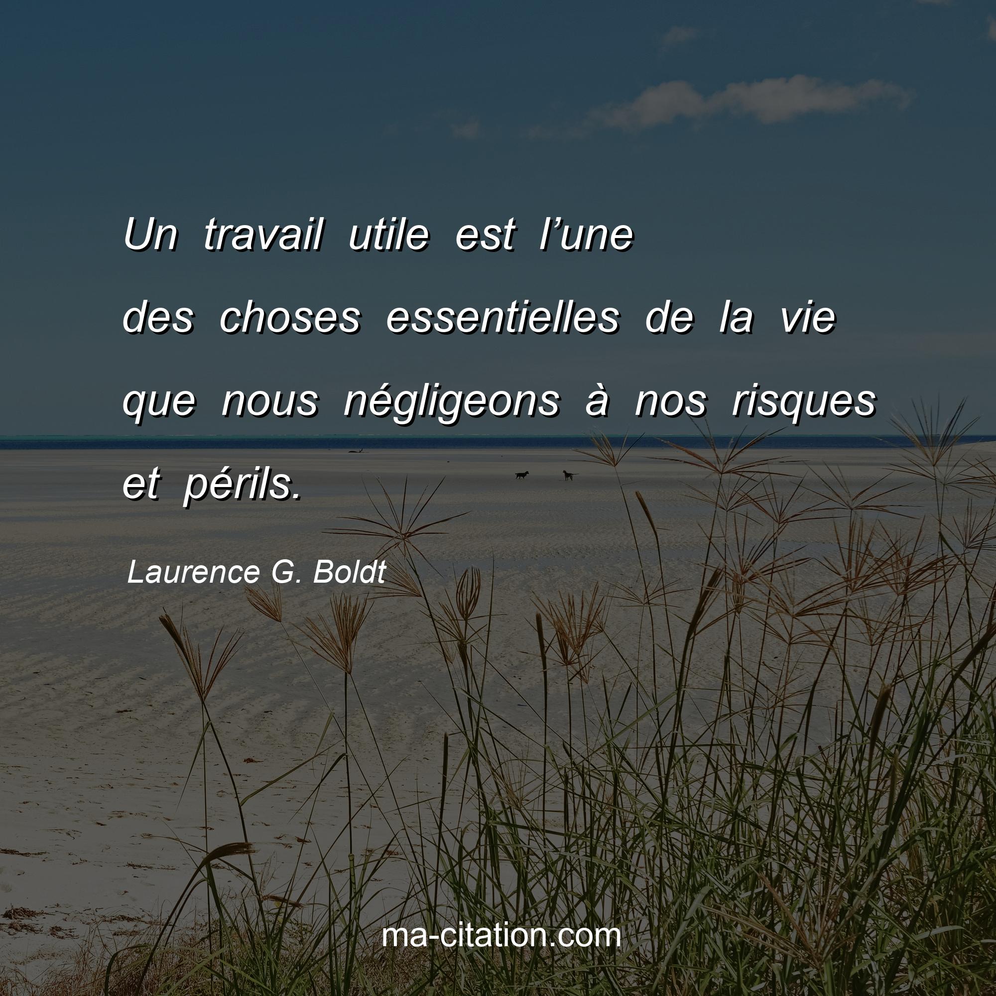Citation sur la vie de Laurence G. Boldt :Un travail utile est l’une des choses essentielles de la vie que nous négligeons à nos risques et périls.