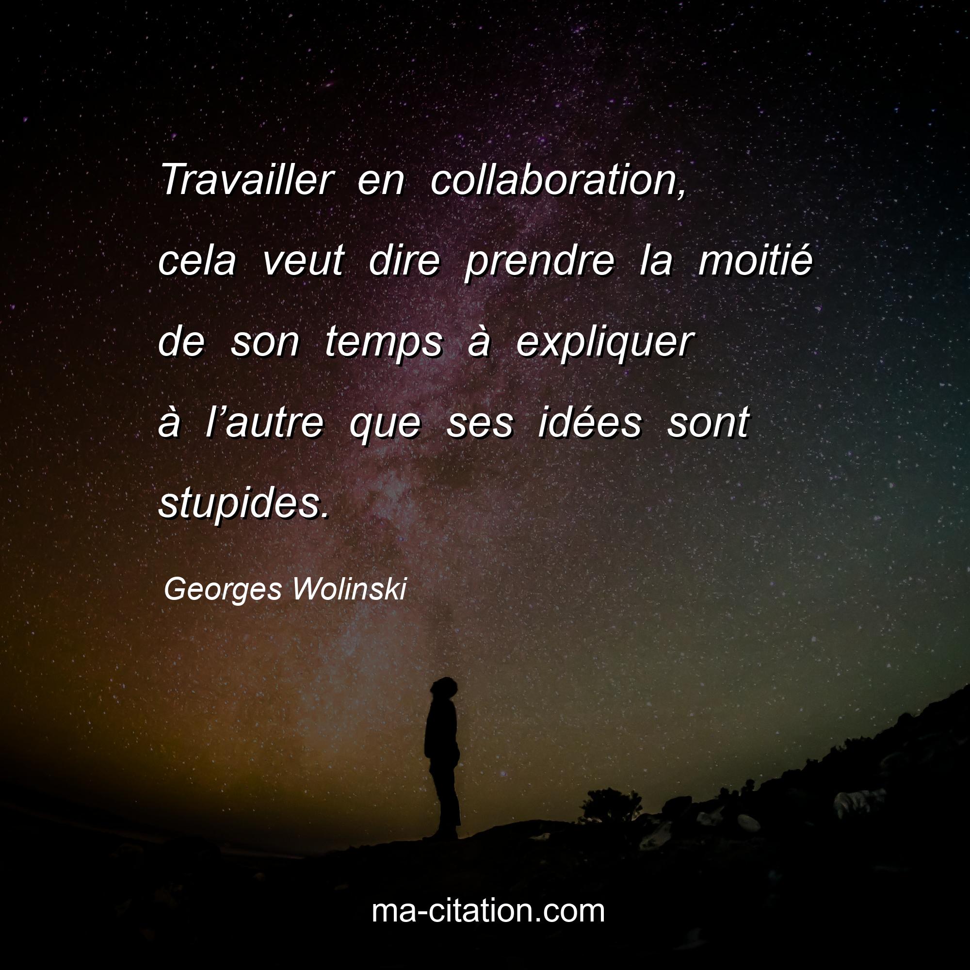 Citation sur la vie de Georges Wolinski :Travailler en collaboration, cela veut dire prendre la moitié de son temps à expliquer à l’autre que ses idées sont stupides.
