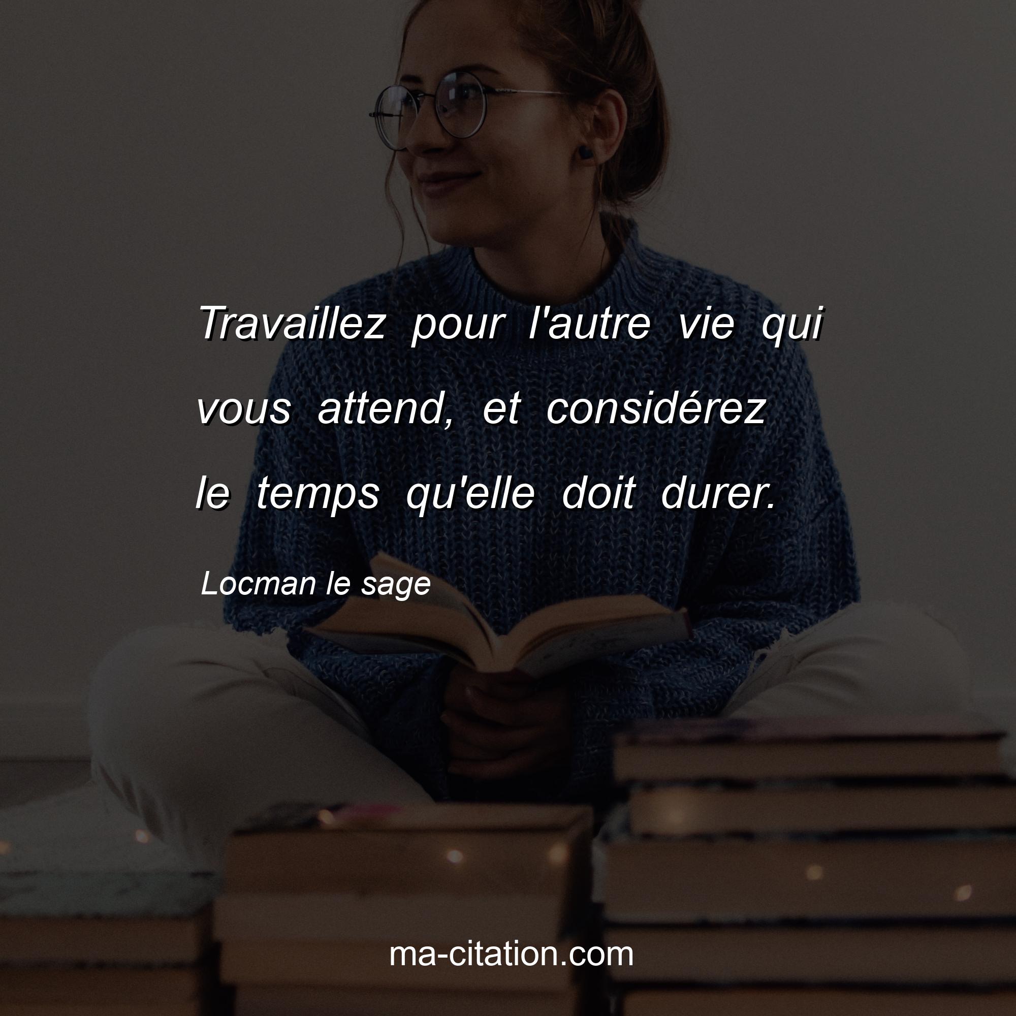 Citation sur la vie de Locman le sage :Travaillez pour l'autre vie qui vous attend, et considérez le temps qu'elle doit durer.