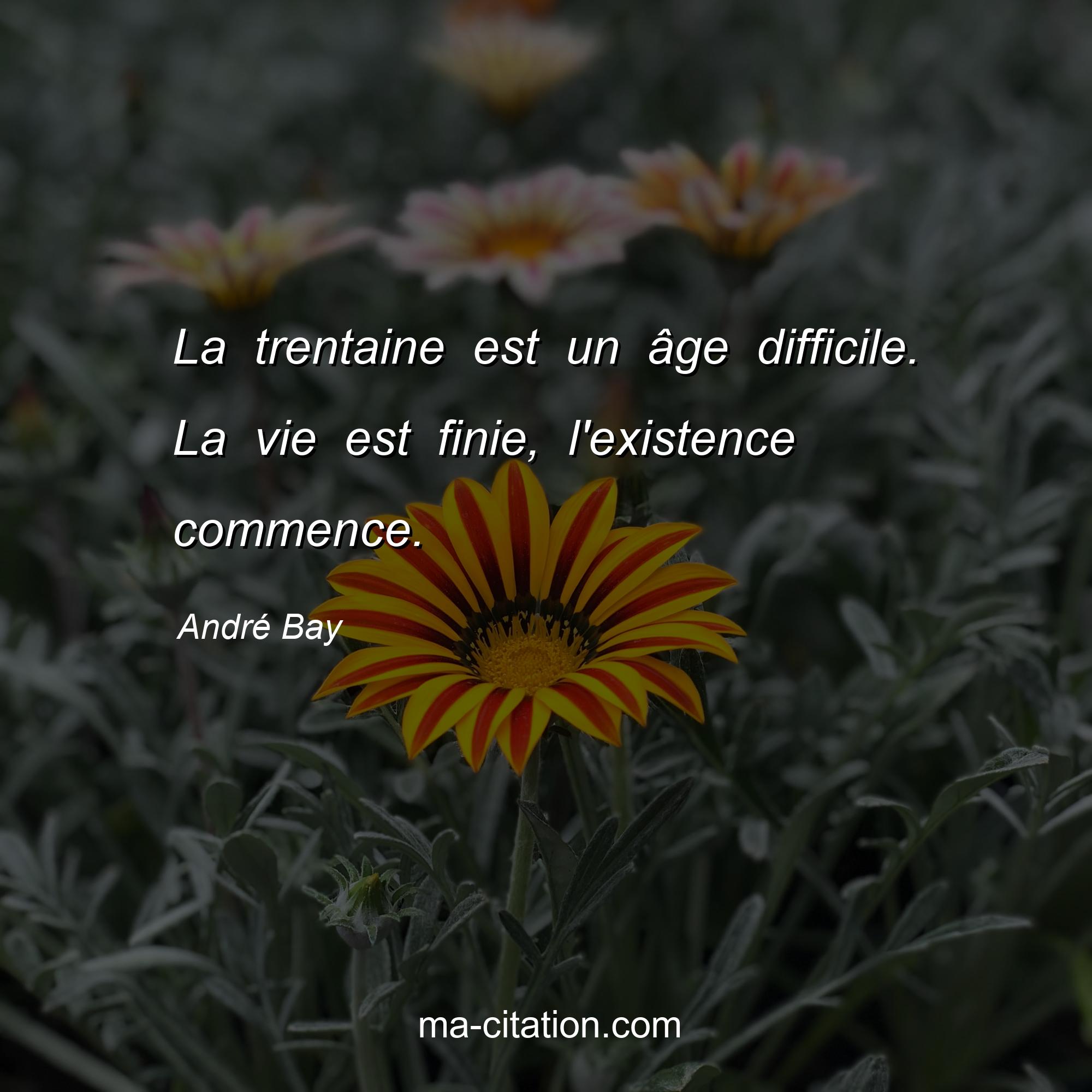 Citation sur la vie d'André Bay :La trentaine est un âge difficile. La vie est finie, l'existence commence.