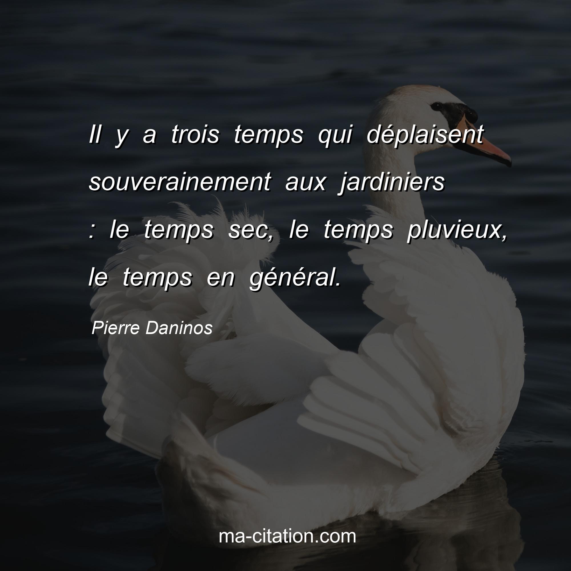 Citation sur la vie de Pierre Daninos :Il y a trois temps qui déplaisent souverainement aux jardiniers : le temps sec, le temps pluvieux, le temps en général.