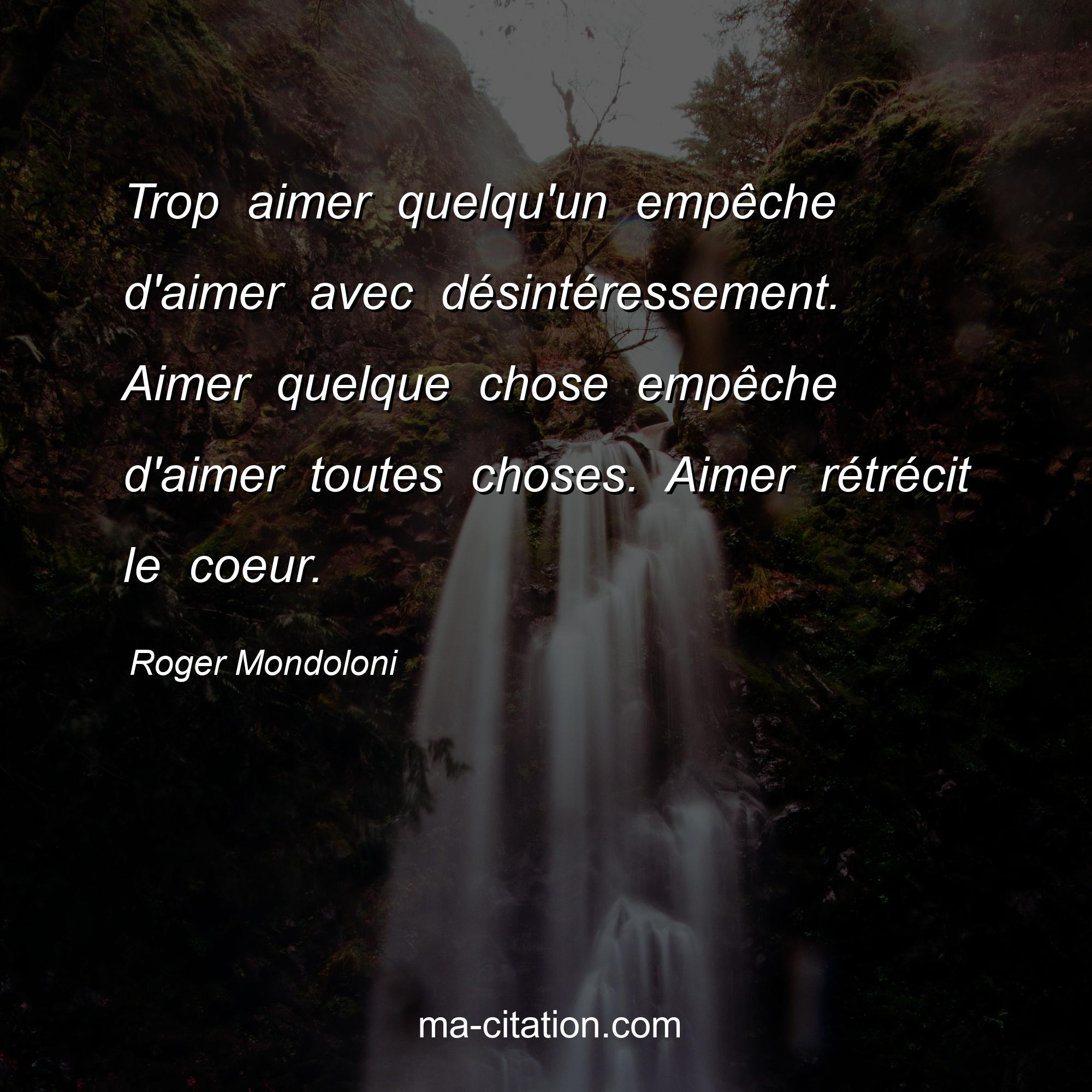 Citation sur la vie de Roger Mondoloni :Trop aimer quelqu'un empêche d'aimer avec désintéressement. Aimer quelque chose empêche d'aimer toutes choses. Aimer rétrécit le coeur.