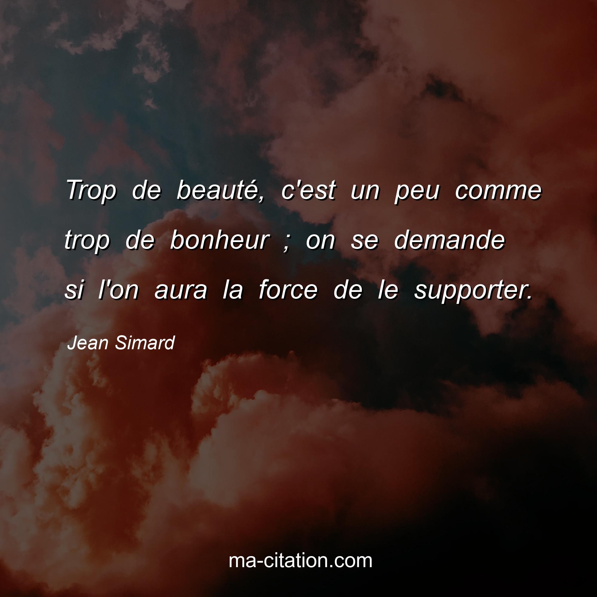 Citation sur la vie de Jean Simard :Trop de beauté, c'est un peu comme trop de bonheur ; on se demande si l'on aura la force de le supporter.