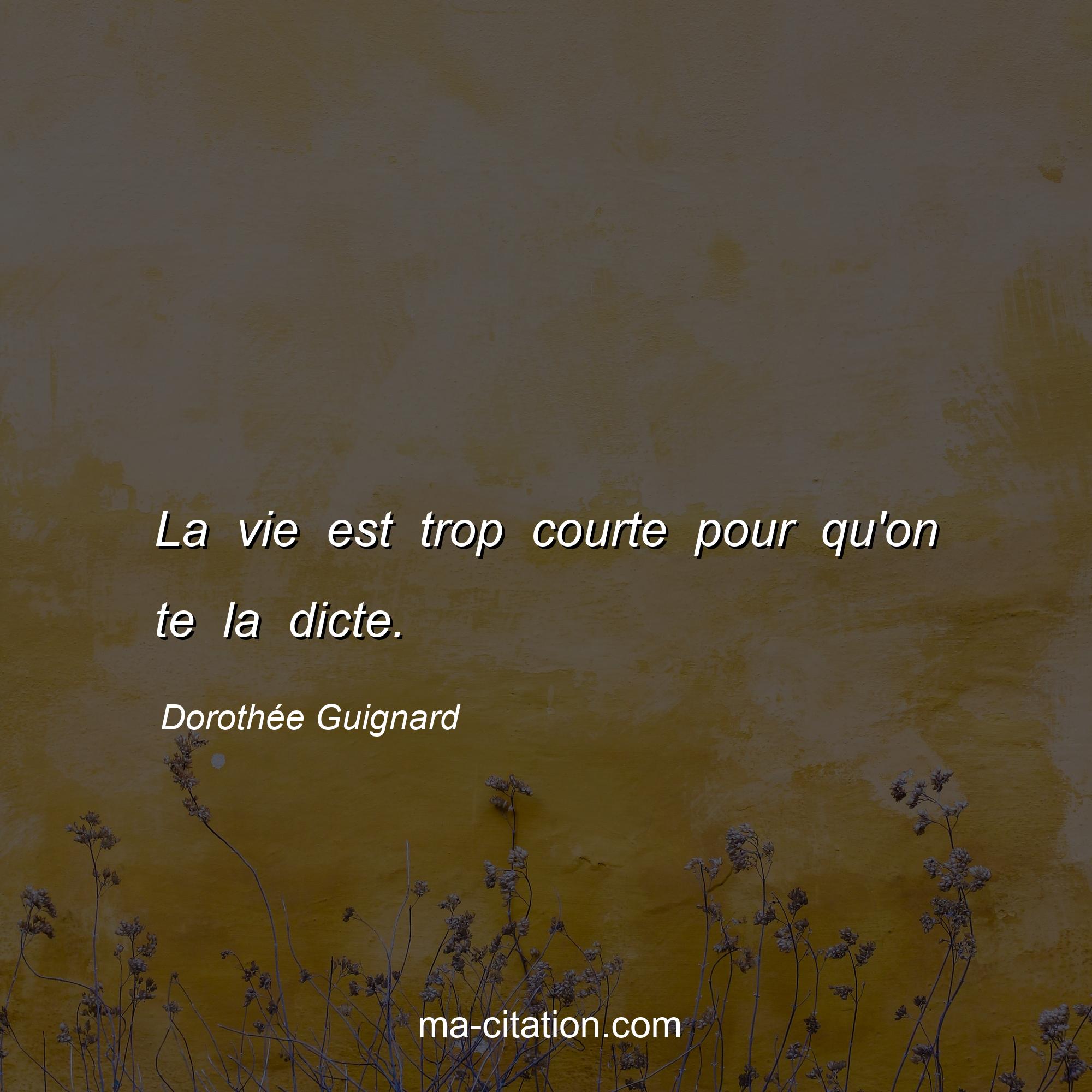 Dorothée Guignard est l'auteur de la citation sur la vie "La vie est trop courte pour qu'on te la dicte.".