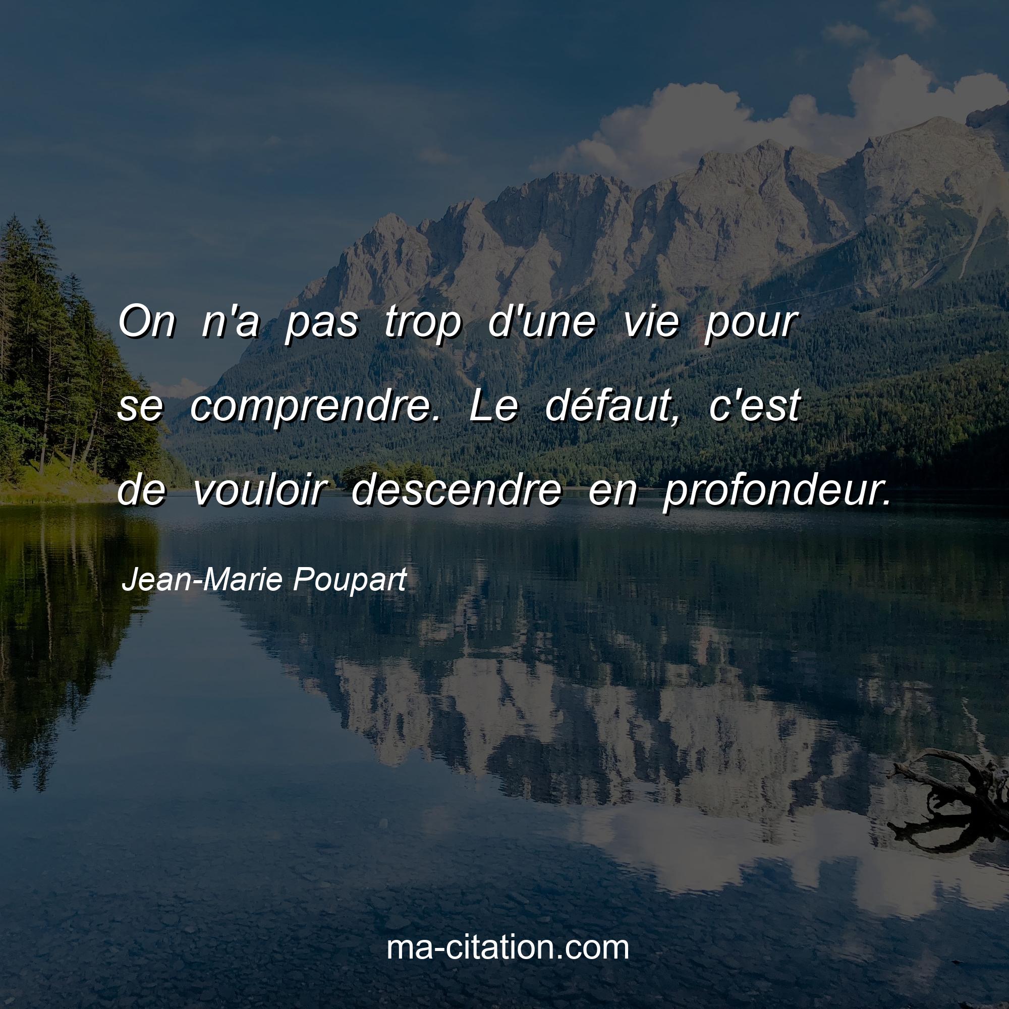 Jean-Marie Poupart est l'auteur de la citation sur la vie "On n'a pas trop d'une vie pour se comprendre. Le défaut, c'est de vouloir descendre en profondeur.".