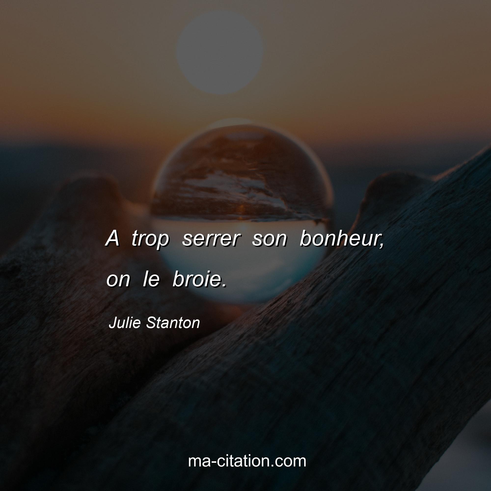 Julie Stanton est l'auteur de la citation sur la vie "A trop serrer son bonheur, on le broie.".