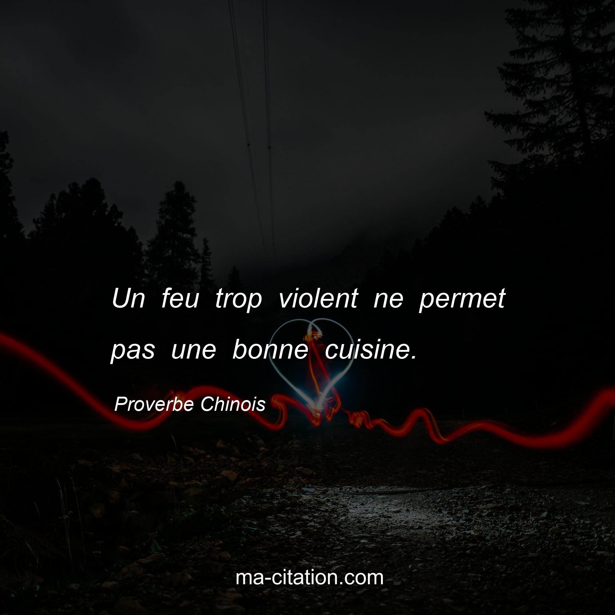 Proverbe Chinois sur la vie :Un feu trop violent ne permet pas une bonne cuisine.