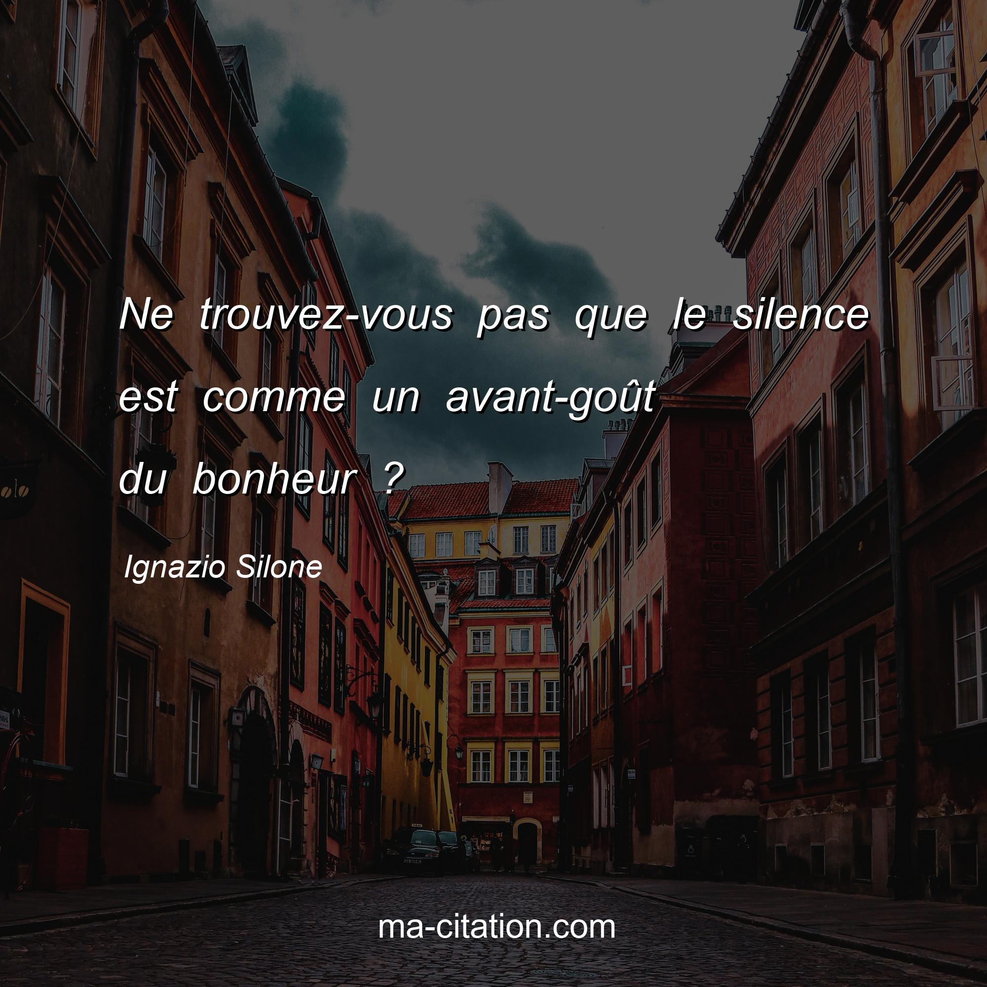 Citation sur la vie d'Ignazio Silone :Ne trouvez-vous pas que le silence est comme un avant-goût du bonheur ?