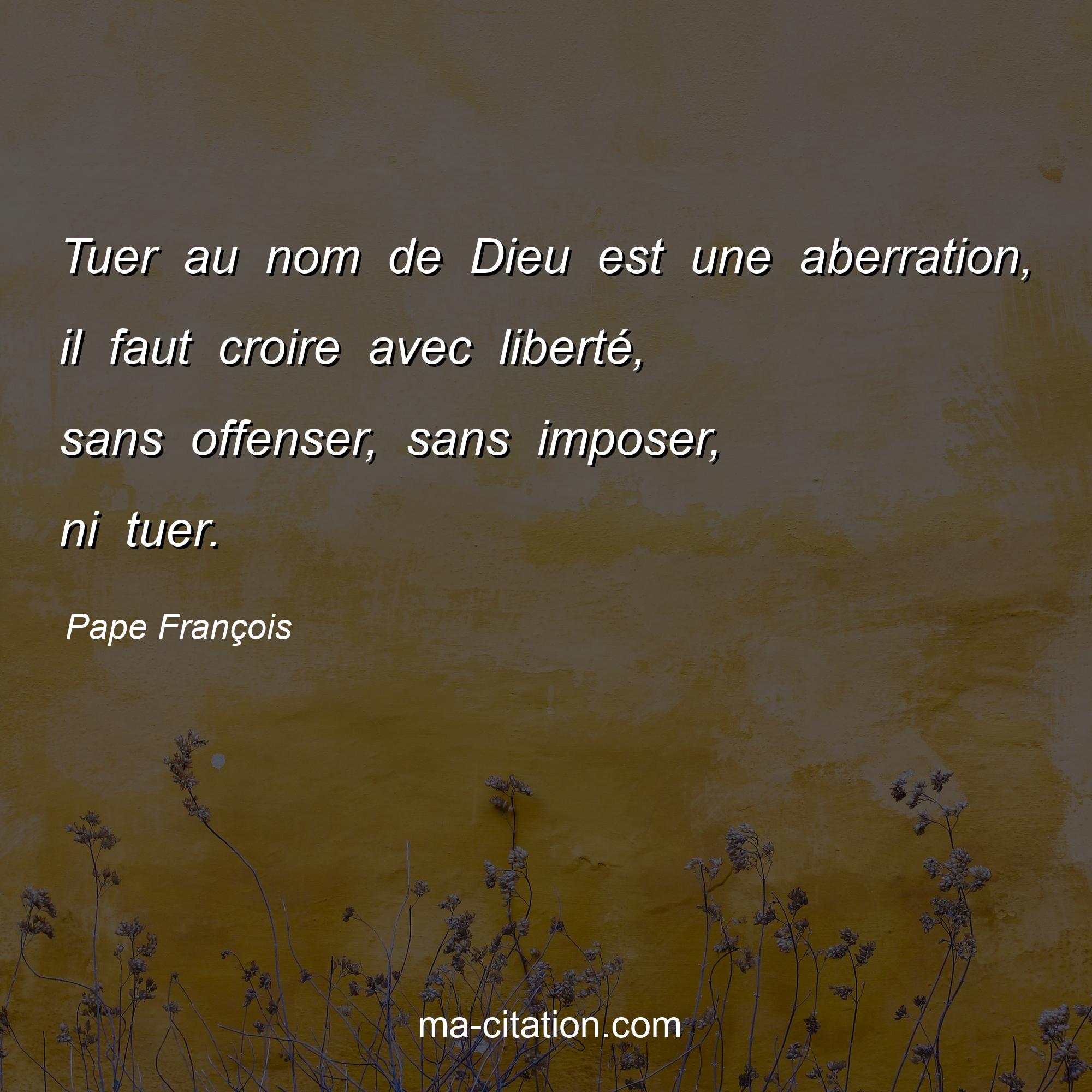 Pape François est l'auteur de la citation sur la vie "Tuer au nom de Dieu est une aberration, il faut croire avec liberté, sans offenser, sans imposer, ni tuer.".