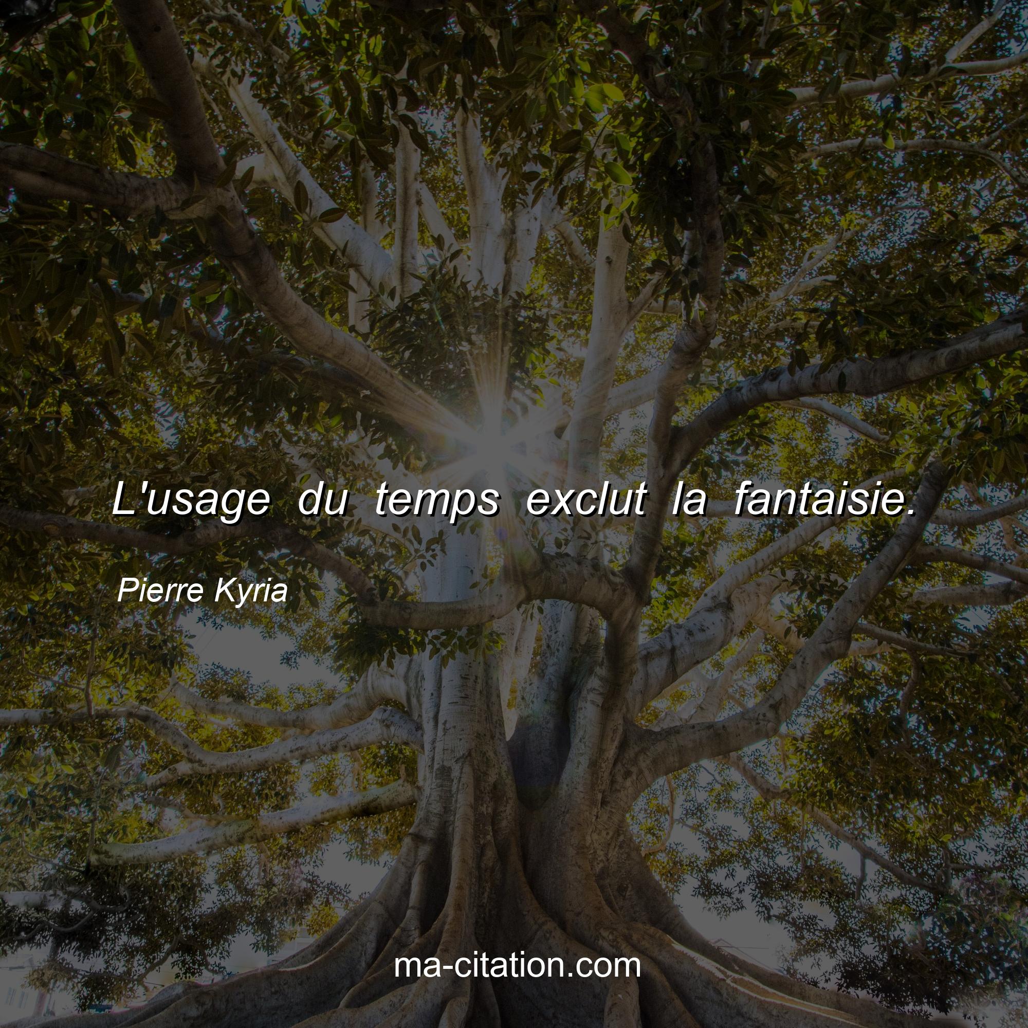 Pierre Kyria est l'auteur de la citation sur la vie "L'usage du temps exclut la fantaisie.".