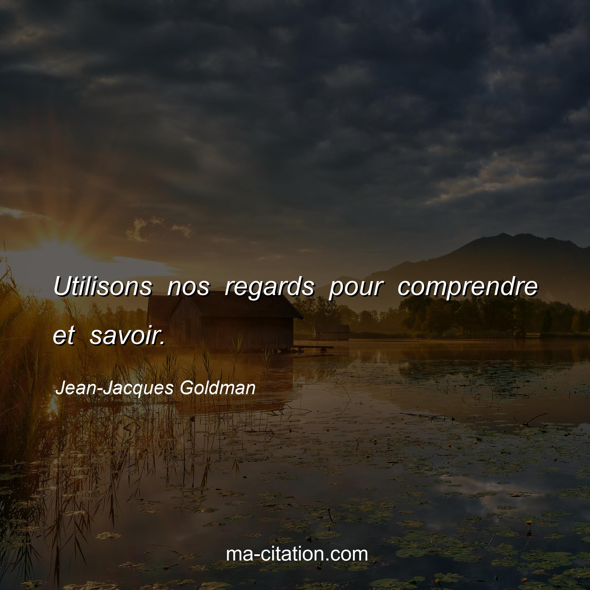 Citation sur la vie de Jean-Jacques Goldman :Utilisons nos regards pour comprendre et savoir.