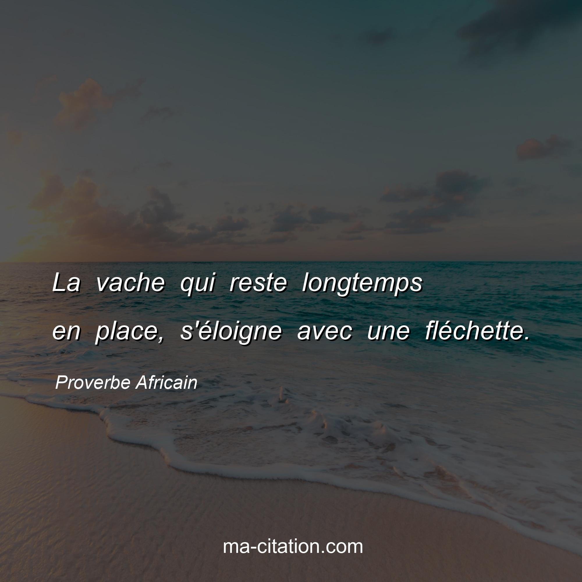 Proverbe Africain sur la vie :La vache qui reste longtemps en place, s'éloigne avec une fléchette.