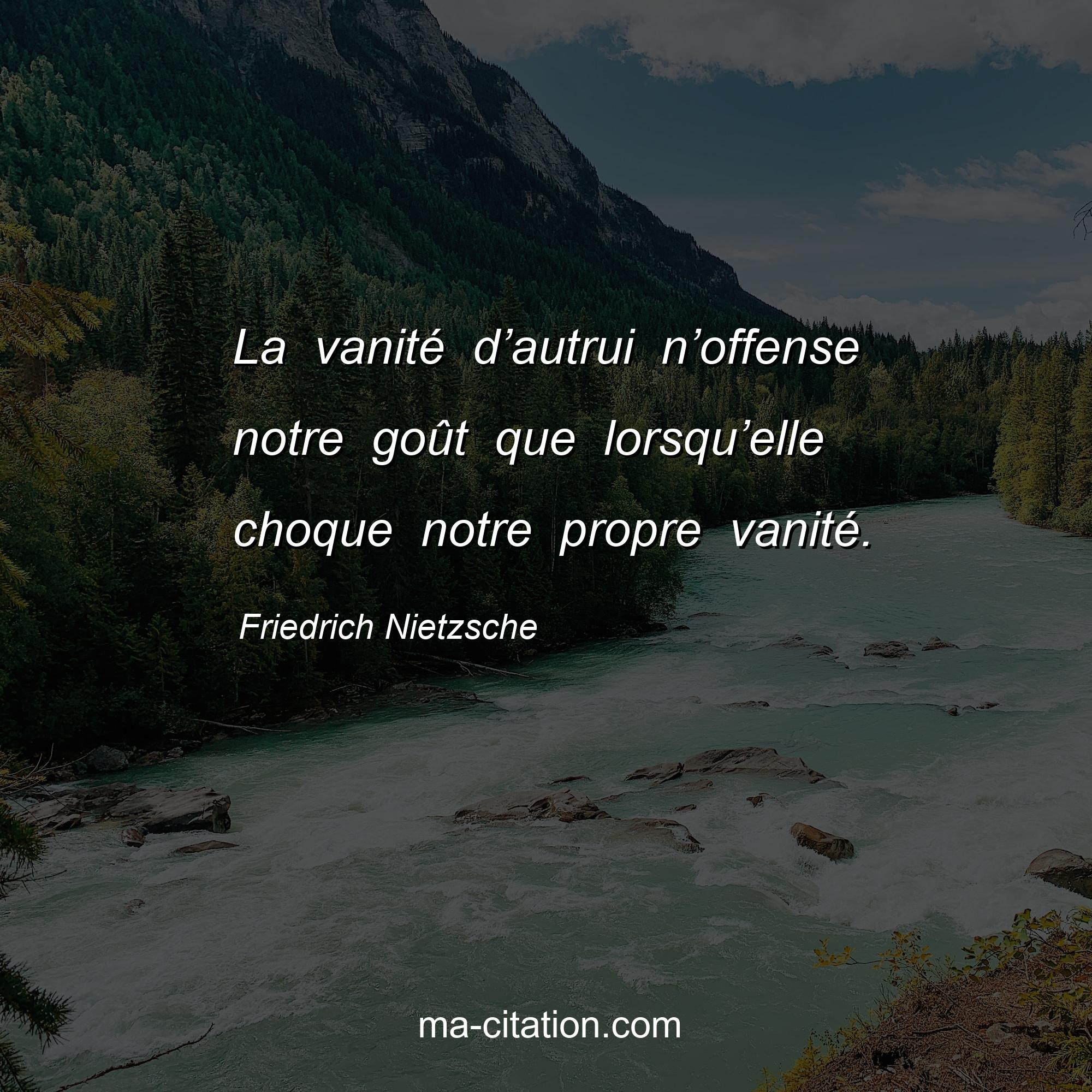 Citation sur la vie de Friedrich Nietzsche :La vanité d’autrui n’offense notre goût que lorsqu’elle choque notre propre vanité.