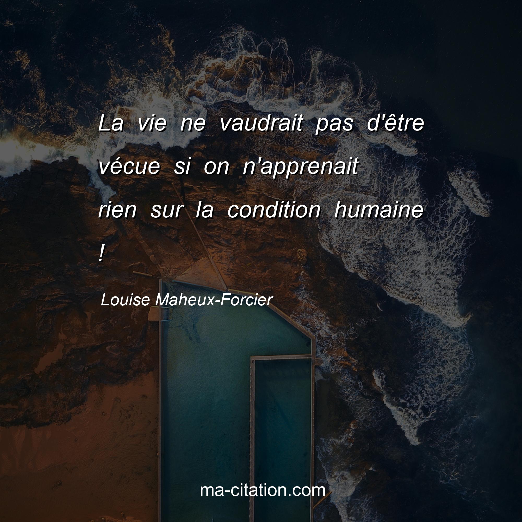 Citation sur la vie de Louise Maheux-Forcier :La vie ne vaudrait pas d'être vécue si on n'apprenait rien sur la condition humaine !