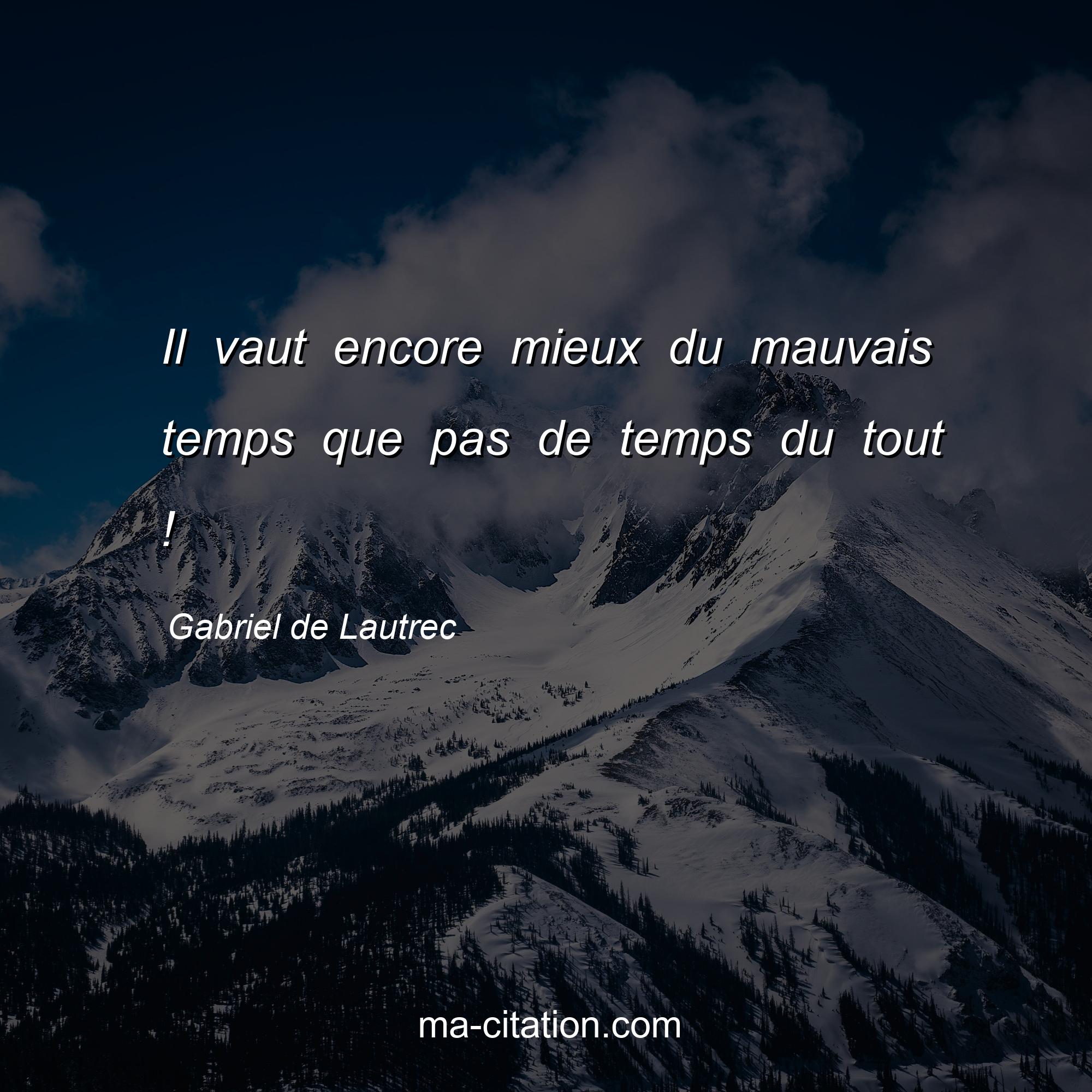 Gabriel de Lautrec est l'auteur de la citation sur la vie "Il vaut encore mieux du mauvais temps que pas de temps du tout !".