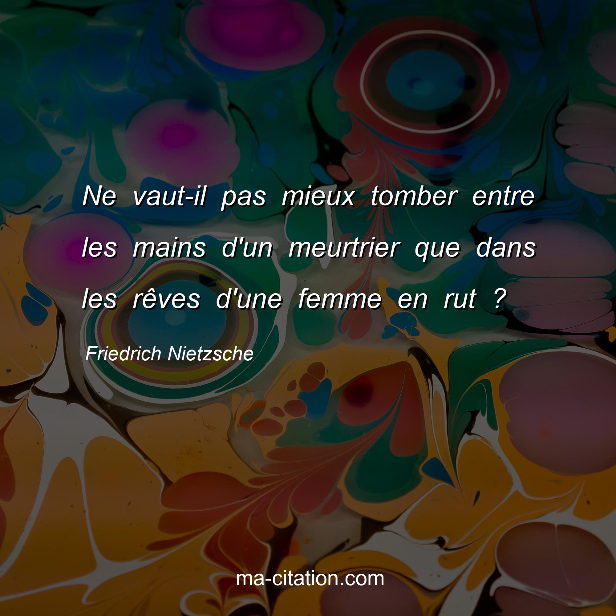 Citation sur la vie de Friedrich Nietzsche :Ne vaut-il pas mieux tomber entre les mains d'un meurtrier que dans les rêves d'une femme en rut ?