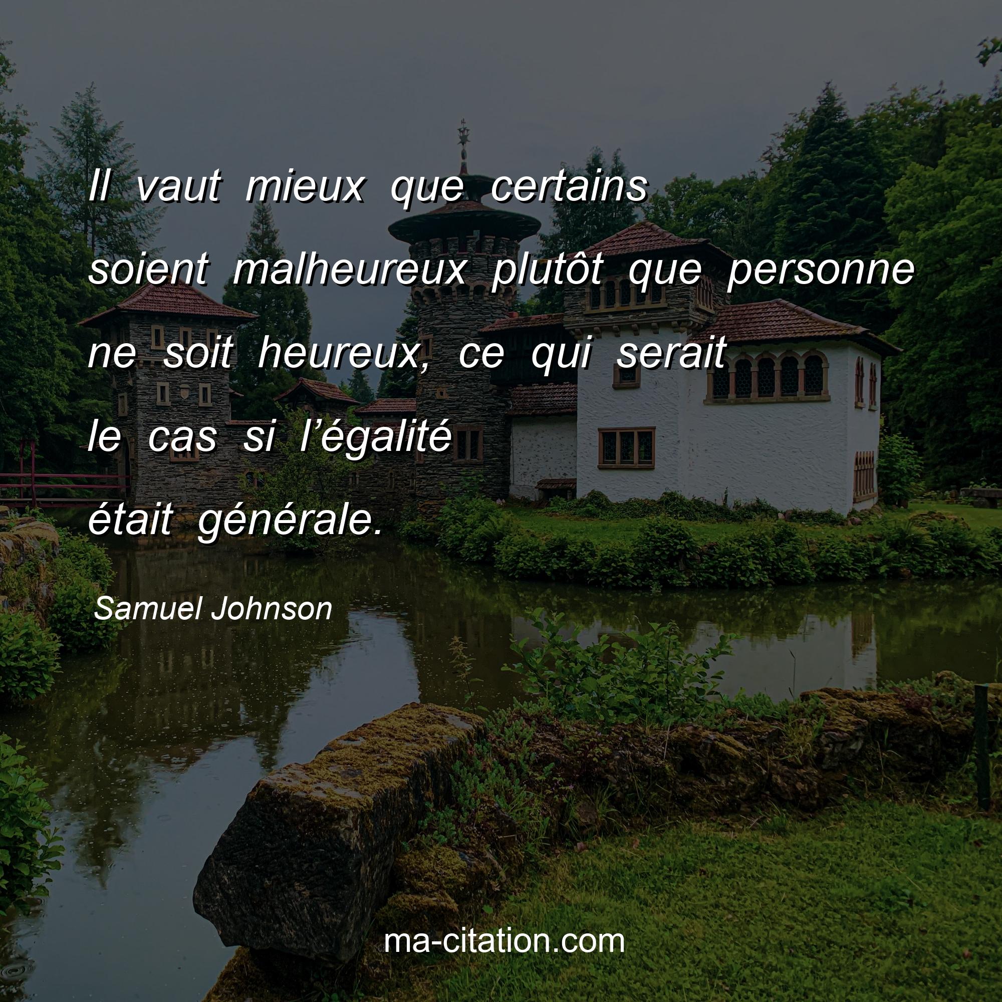 Citation sur la vie de Samuel Johnson :Il vaut mieux que certains soient malheureux plutôt que personne ne soit heureux, ce qui serait le cas si l’égalité était générale.