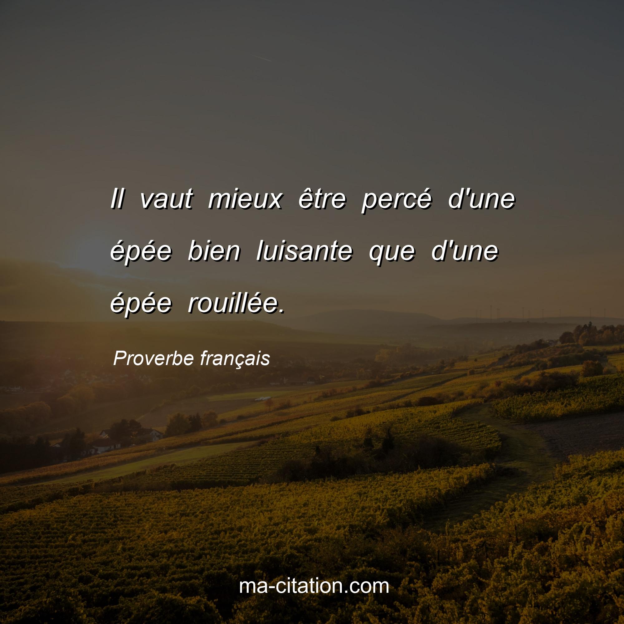 Proverbe français sur la vie :Il vaut mieux être percé d'une épée bien luisante que d'une épée rouillée.