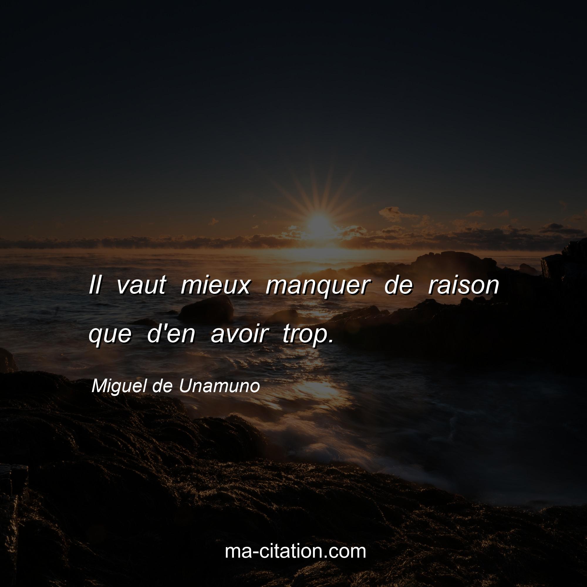 Citation sur la vie de Miguel de Unamuno :Il vaut mieux manquer de raison que d'en avoir trop.