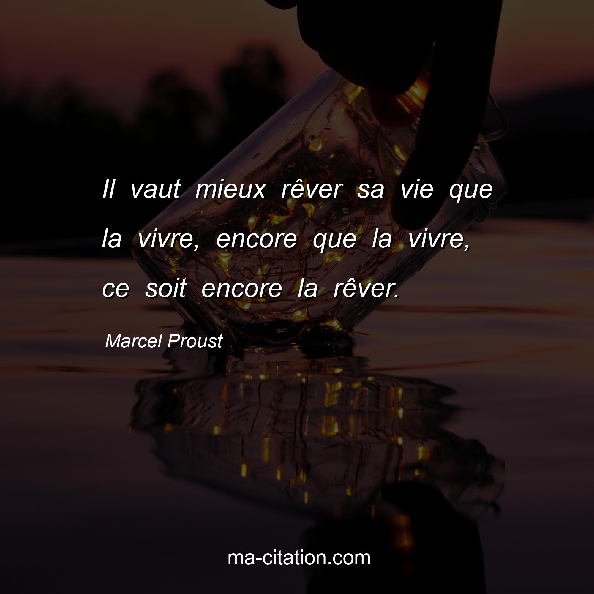 Citation sur la vie de Marcel Proust :Il vaut mieux rêver sa vie que la vivre, encore que la vivre, ce soit encore la rêver.