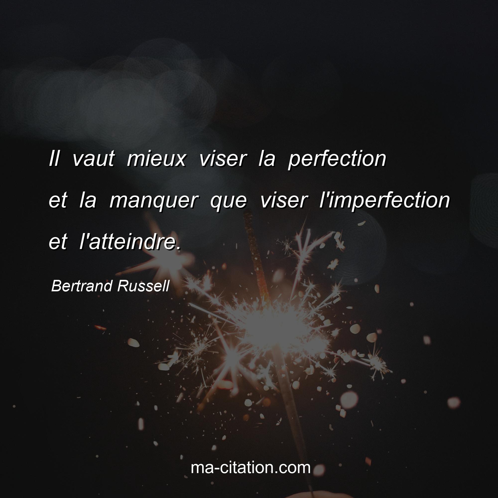 Bertrand Russell est l'auteur de la citation sur la vie "Il vaut mieux viser la perfection et la manquer que viser l'imperfection et l'atteindre.".