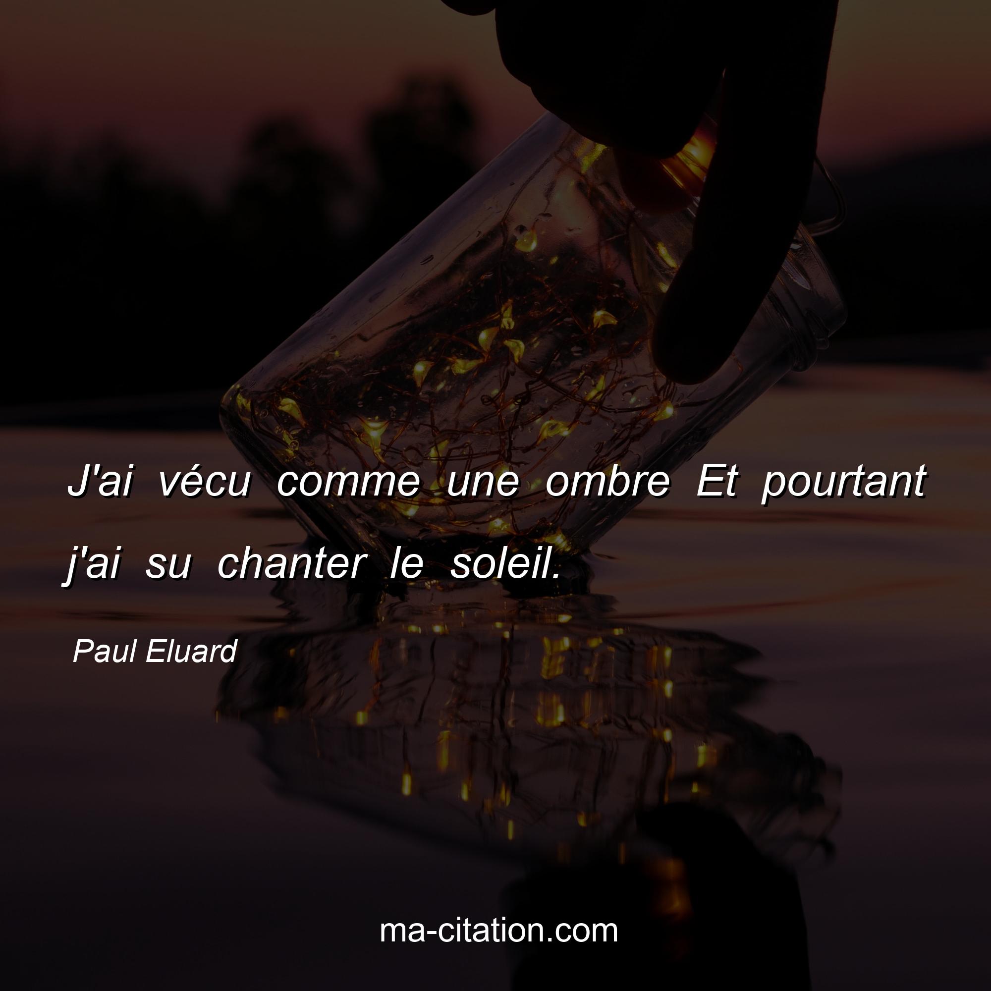 Paul Eluard est l'auteur de la citation sur la vie "J'ai vécu comme une ombre Et pourtant j'ai su chanter le soleil.".