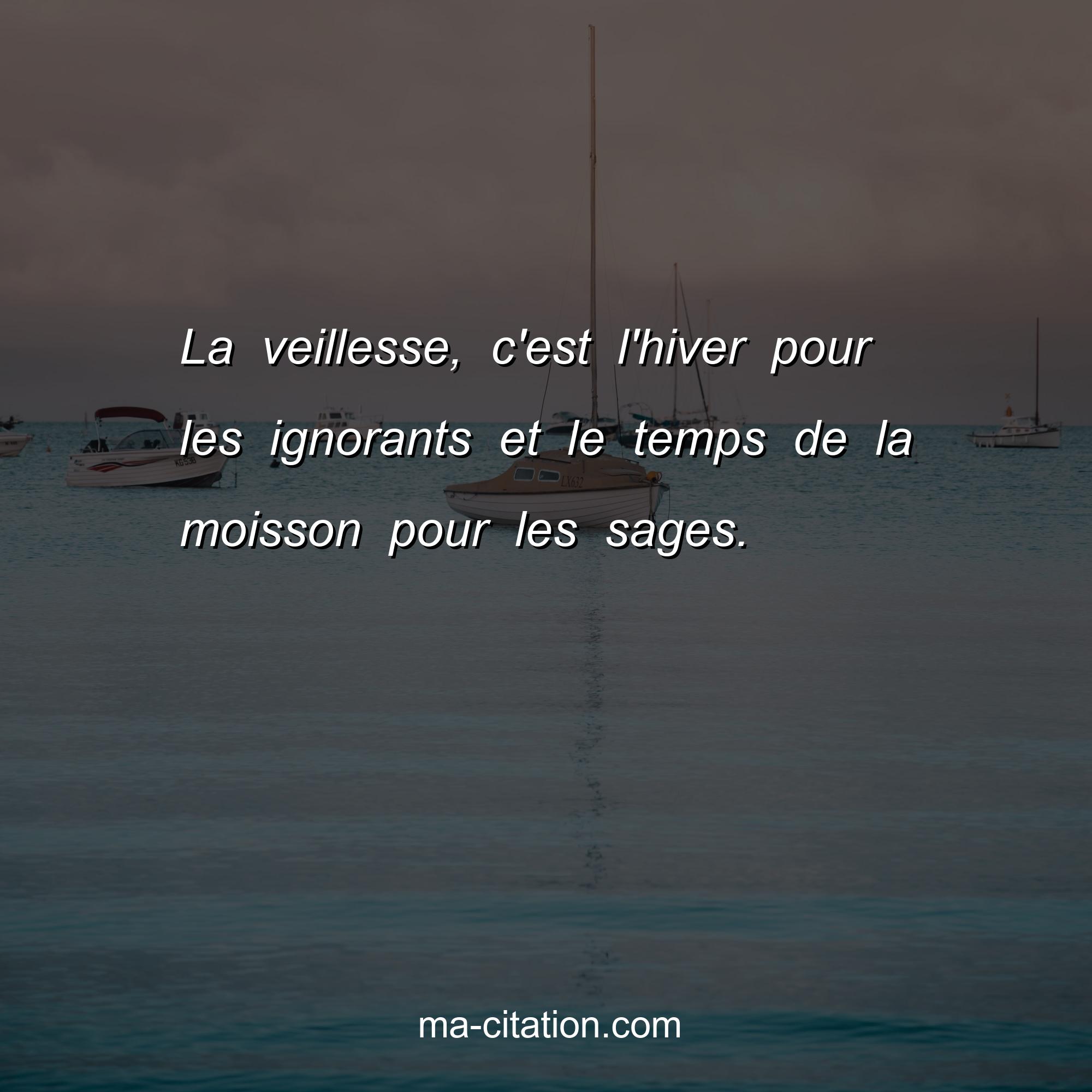 La veillesse, c'est l'hiver pour les ignorants et le temps de la moisson pour les sages.