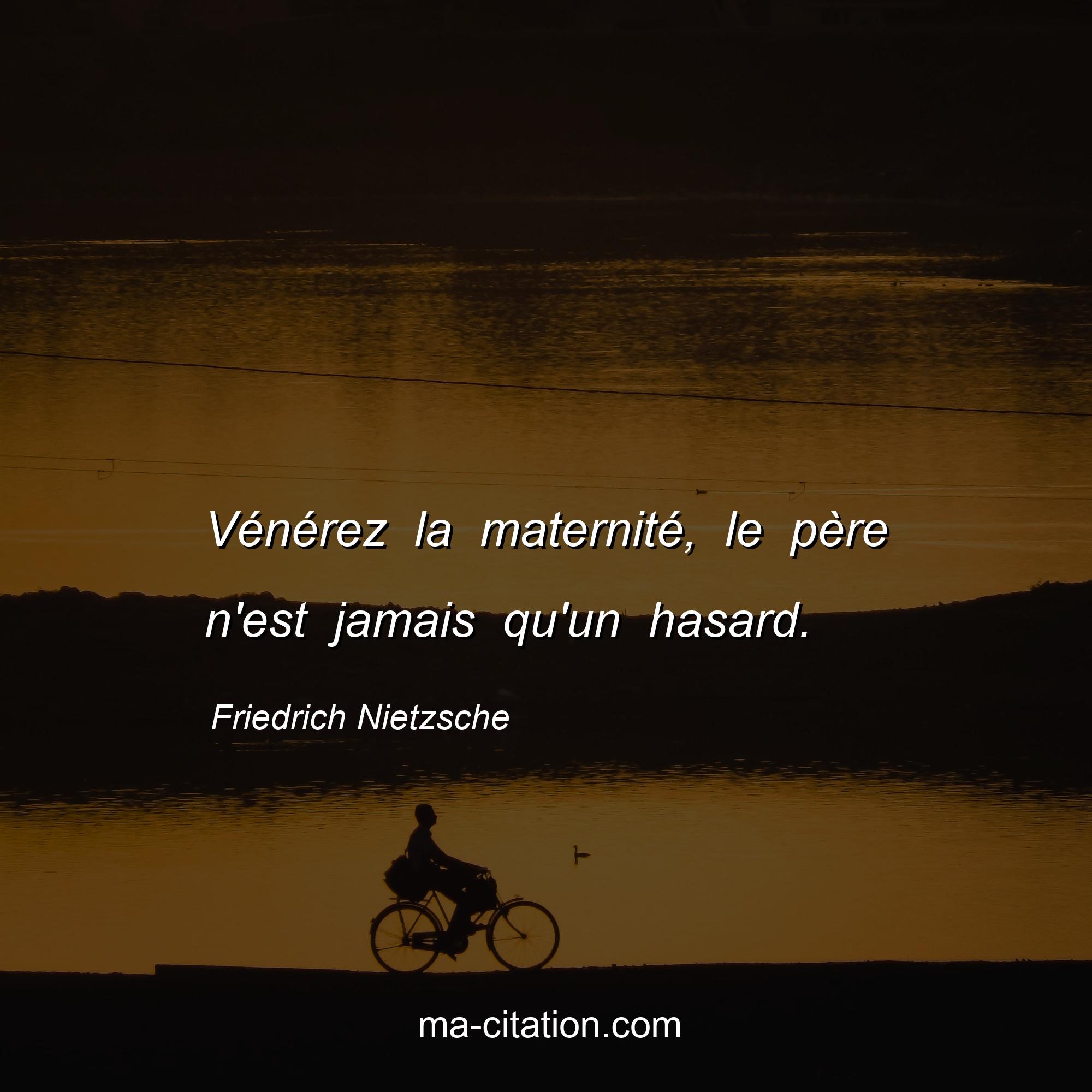 Citation sur la vie de Friedrich Nietzsche :Vénérez la maternité, le père n'est jamais qu'un hasard.