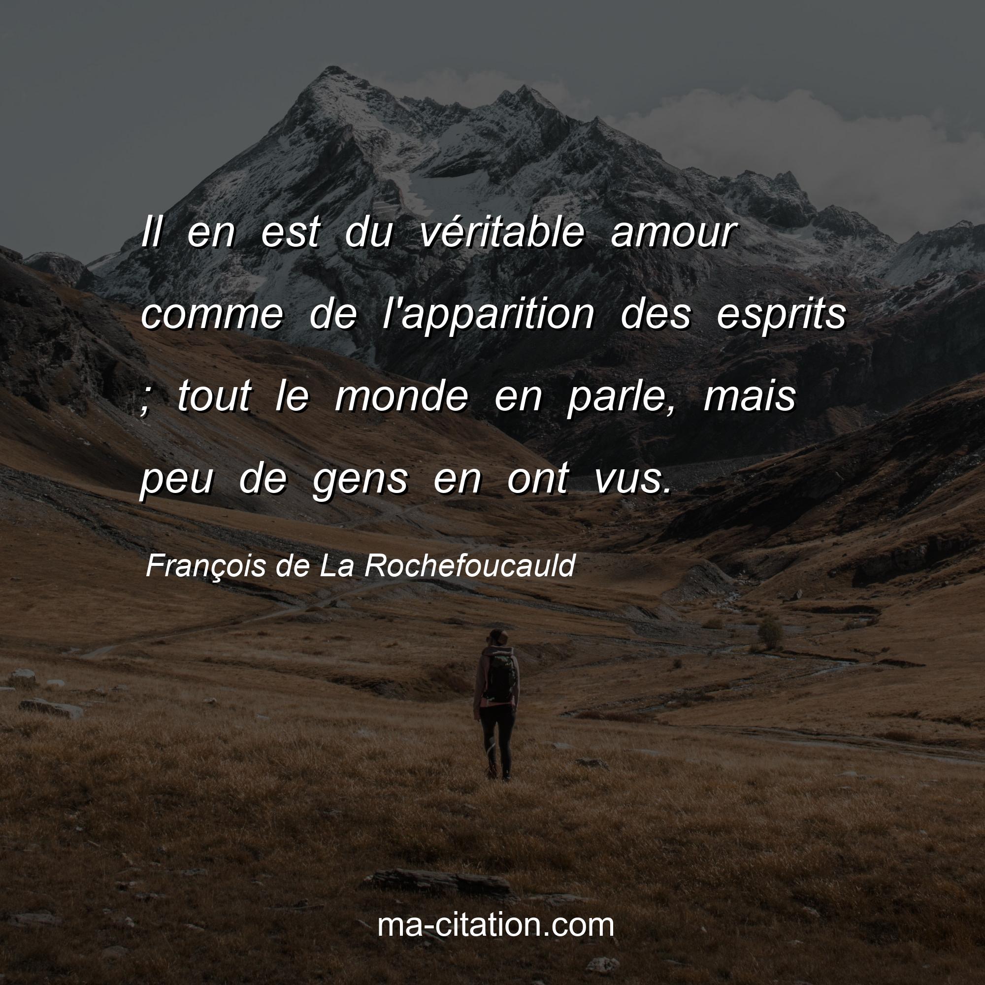 Citation sur la vie de François de La Rochefoucauld :Il en est du véritable amour comme de l'apparition des esprits ; tout le monde en parle, mais peu de gens en ont vus.