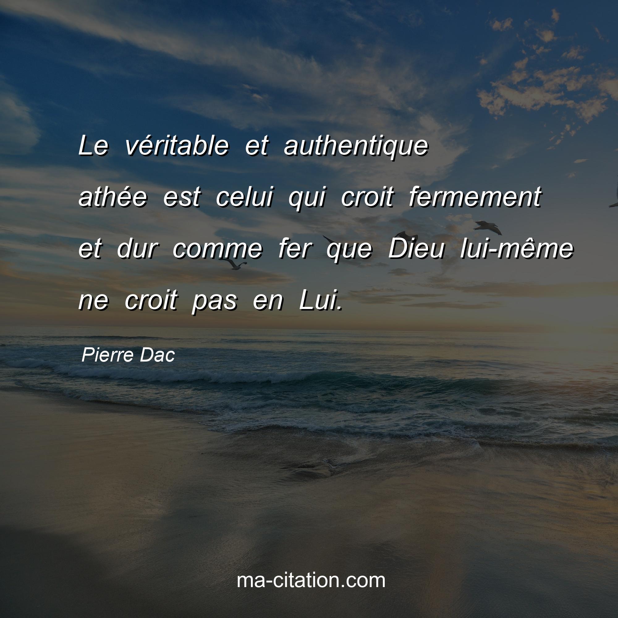 Citation sur la vie de Pierre Dac :Le véritable et authentique athée est celui qui croit fermement et dur comme fer que Dieu lui-même ne croit pas en Lui.