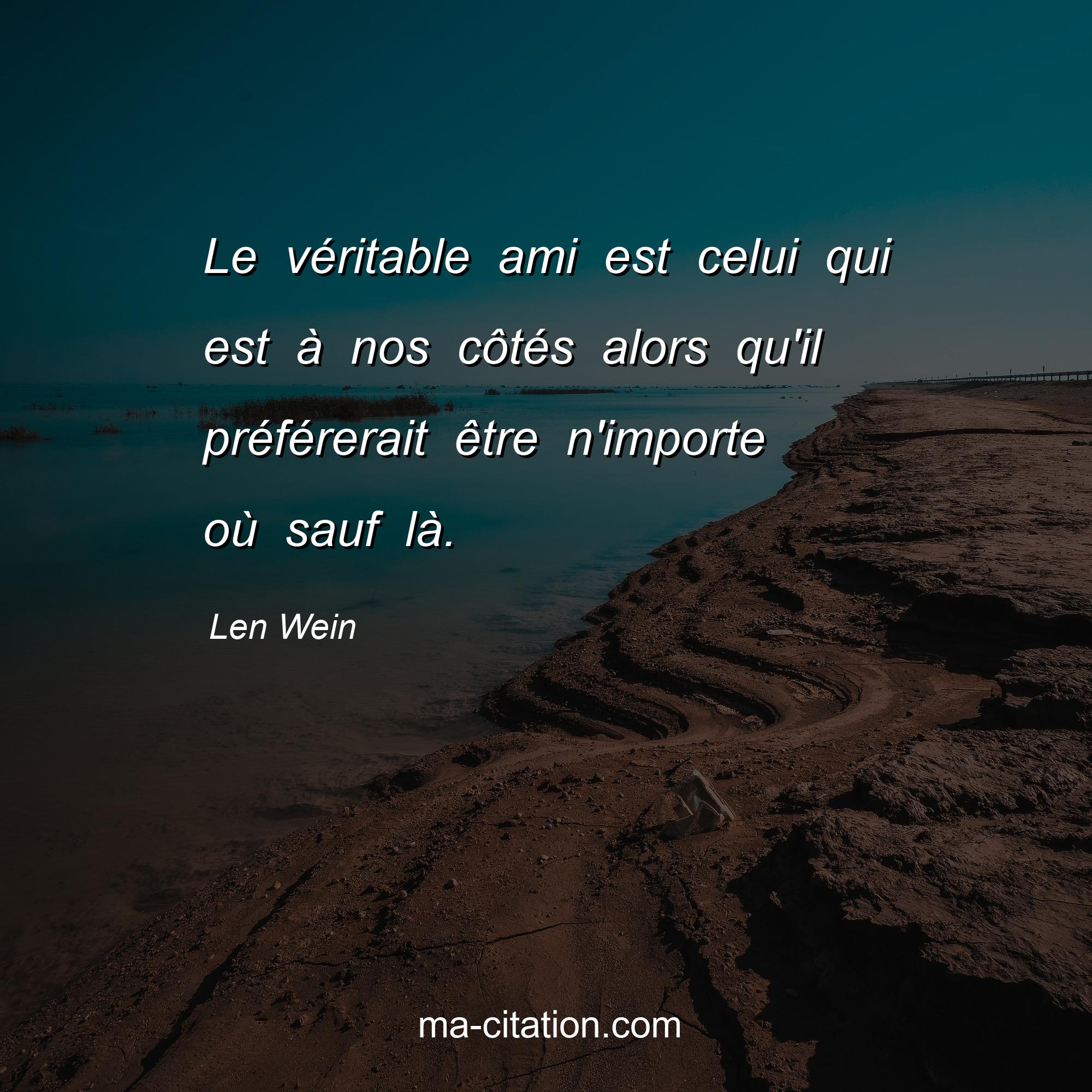 Citation sur la vie de Len Wein :Le véritable ami est celui qui est à nos côtés alors qu'il préférerait être n'importe où sauf là .
