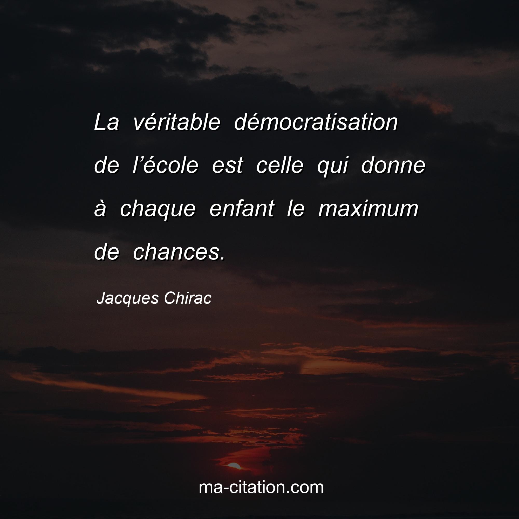 Citation sur la vie de Jacques Chirac :La véritable démocratisation de l’école est celle qui donne à chaque enfant le maximum de chances.