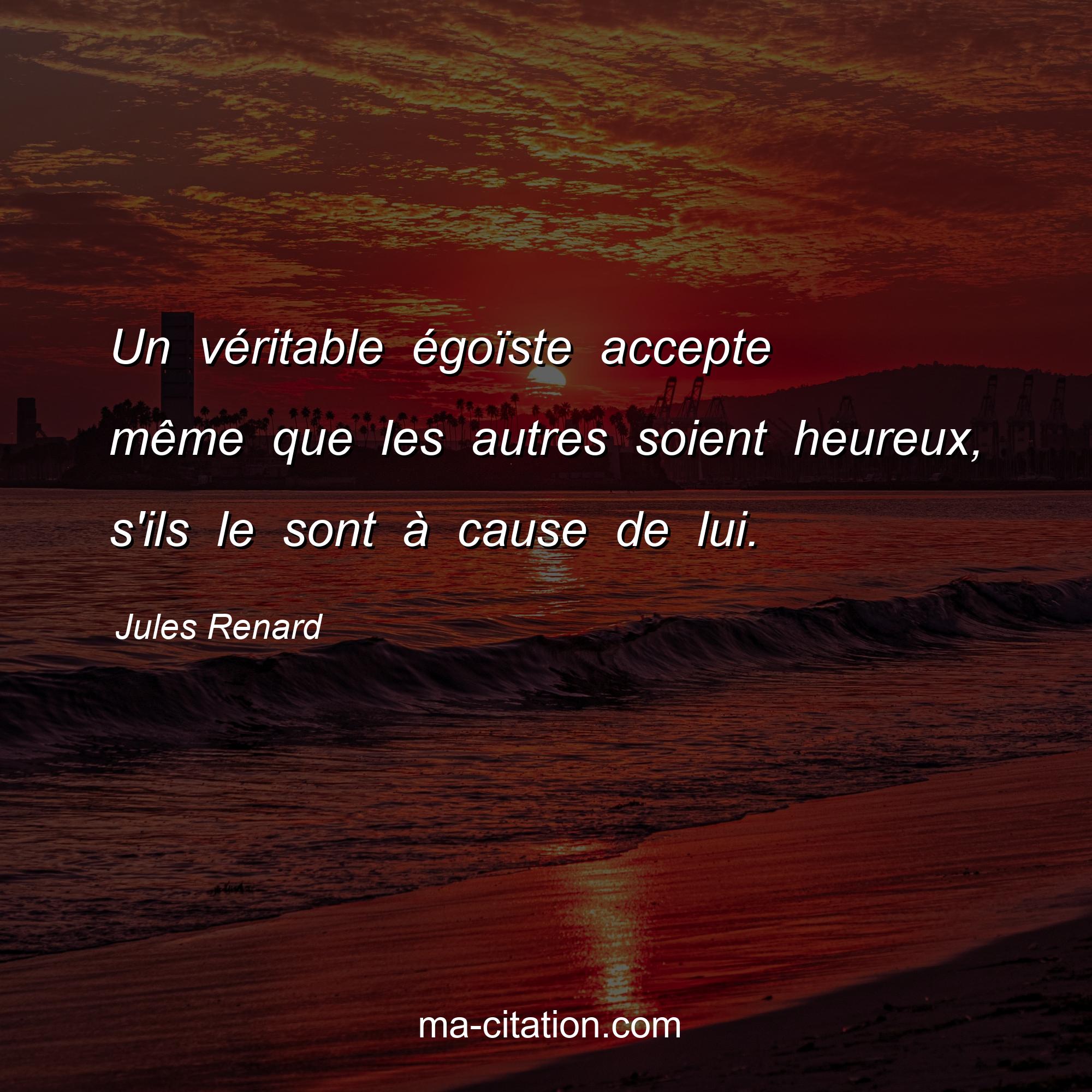 Jules Renard est l'auteur de la citation sur la vie "Un véritable égoïste accepte même que les autres soient heureux, s'ils le sont à cause de lui.".