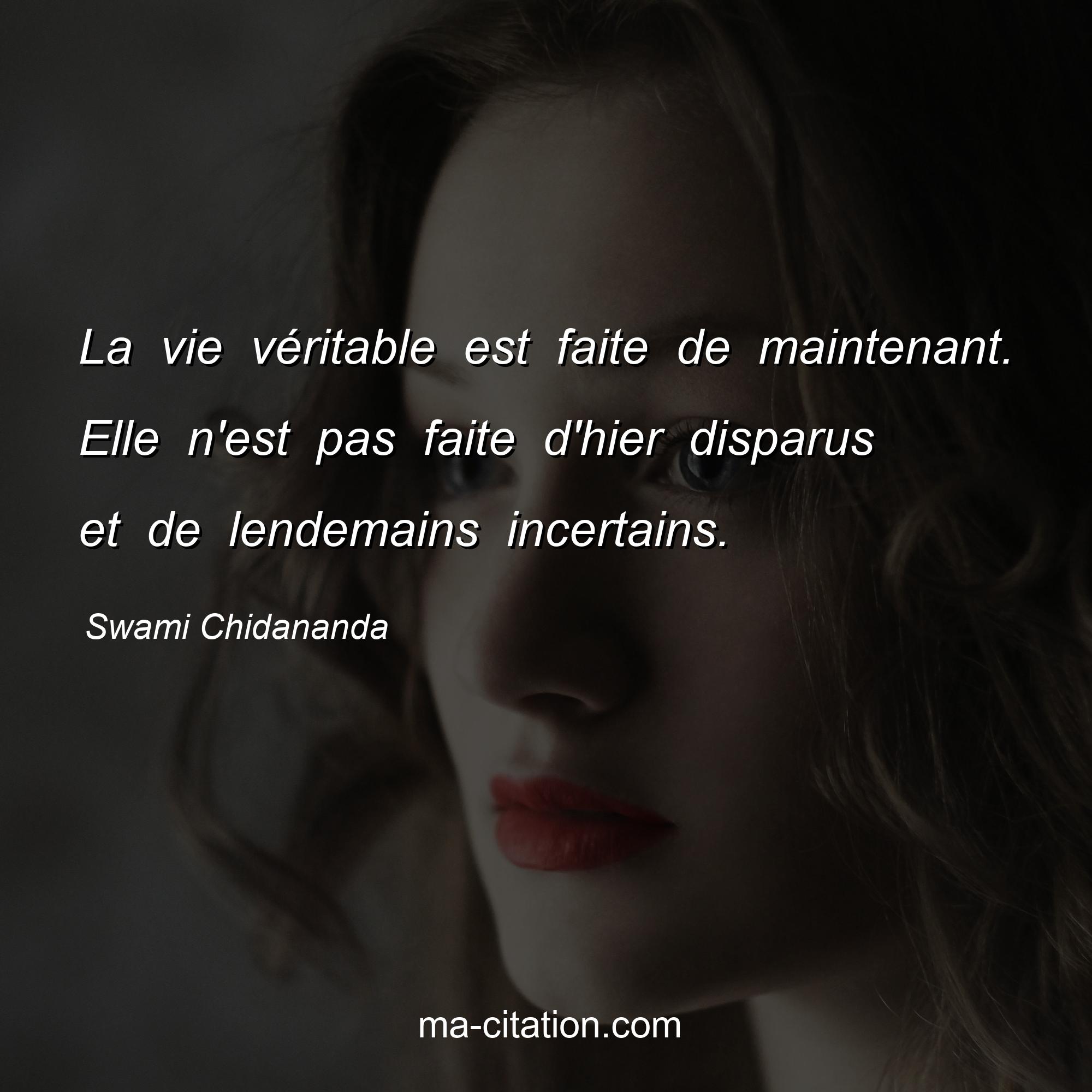 Citation sur la vie de Swami Chidananda :La vie véritable est faite de maintenant. Elle n'est pas faite d'hier disparus et de lendemains incertains.