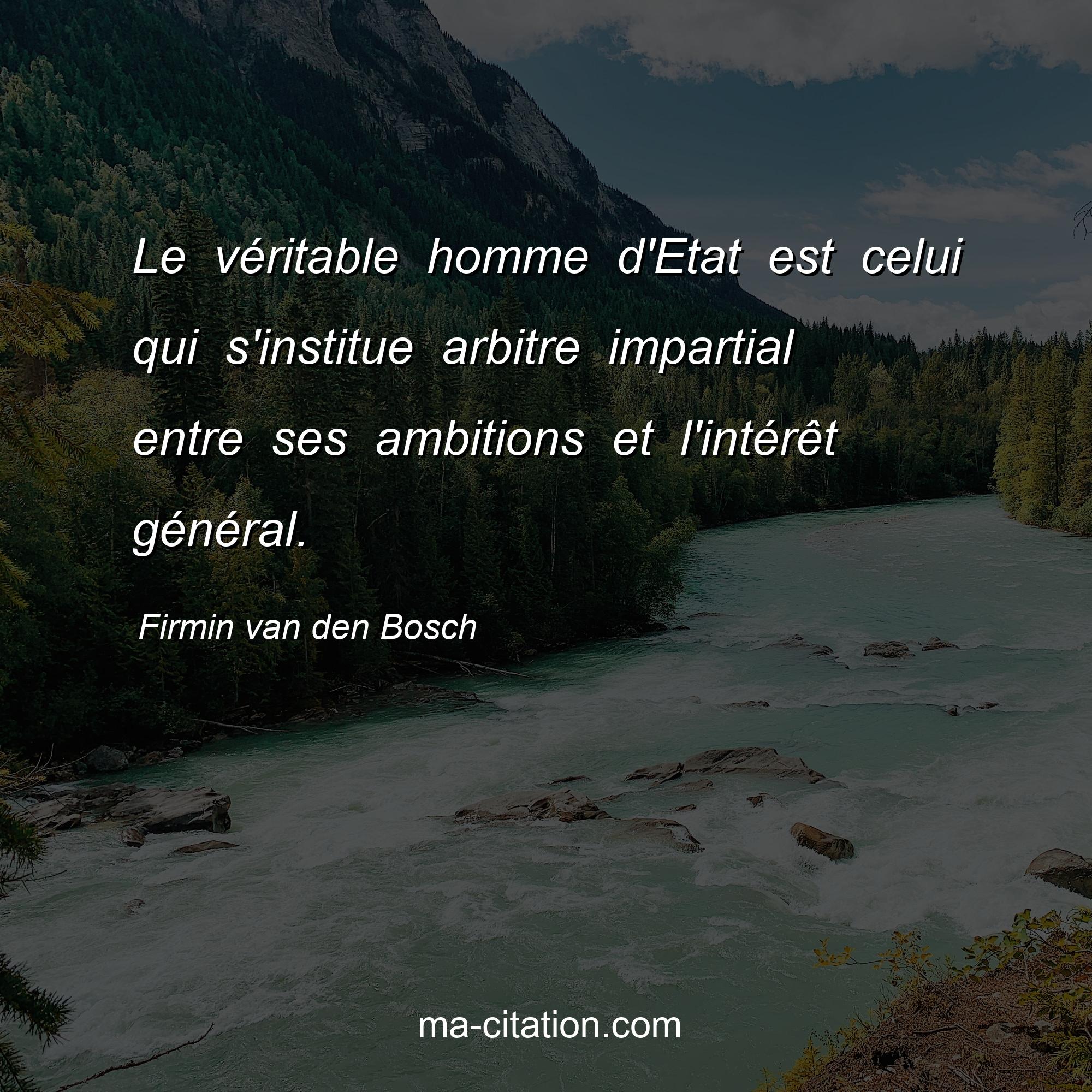 Citation sur la vie de Firmin van den Bosch :Le véritable homme d'Etat est celui qui s'institue arbitre impartial entre ses ambitions et l'intérêt général.