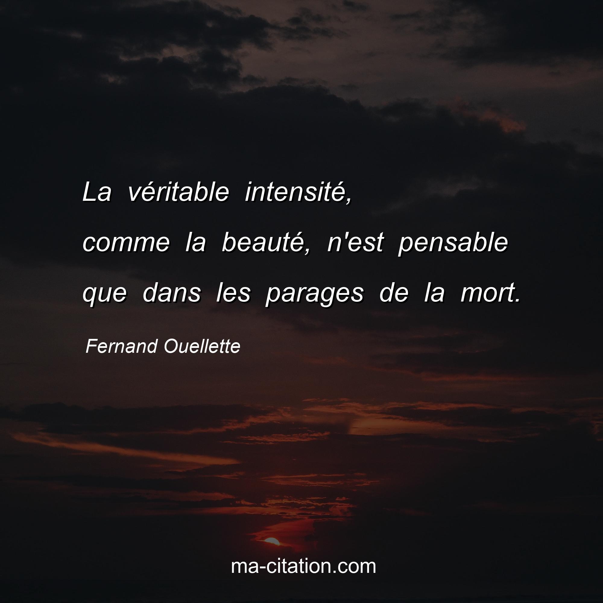 Citation sur la vie de Fernand Ouellette :La véritable intensité, comme la beauté, n'est pensable que dans les parages de la mort.