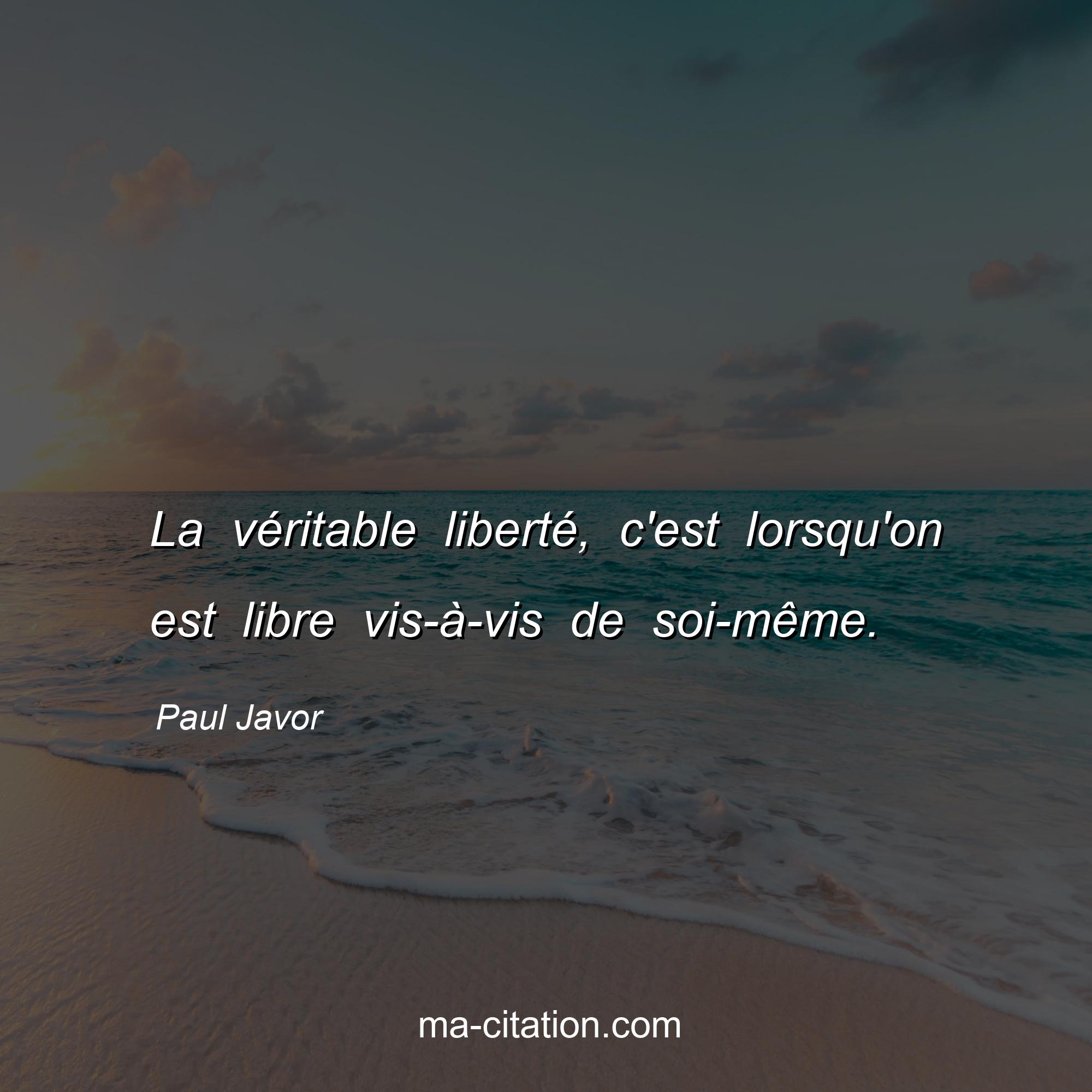 Citation sur la vie de Paul Javor :La véritable liberté, c'est lorsqu'on est libre vis-à -vis de soi-même.