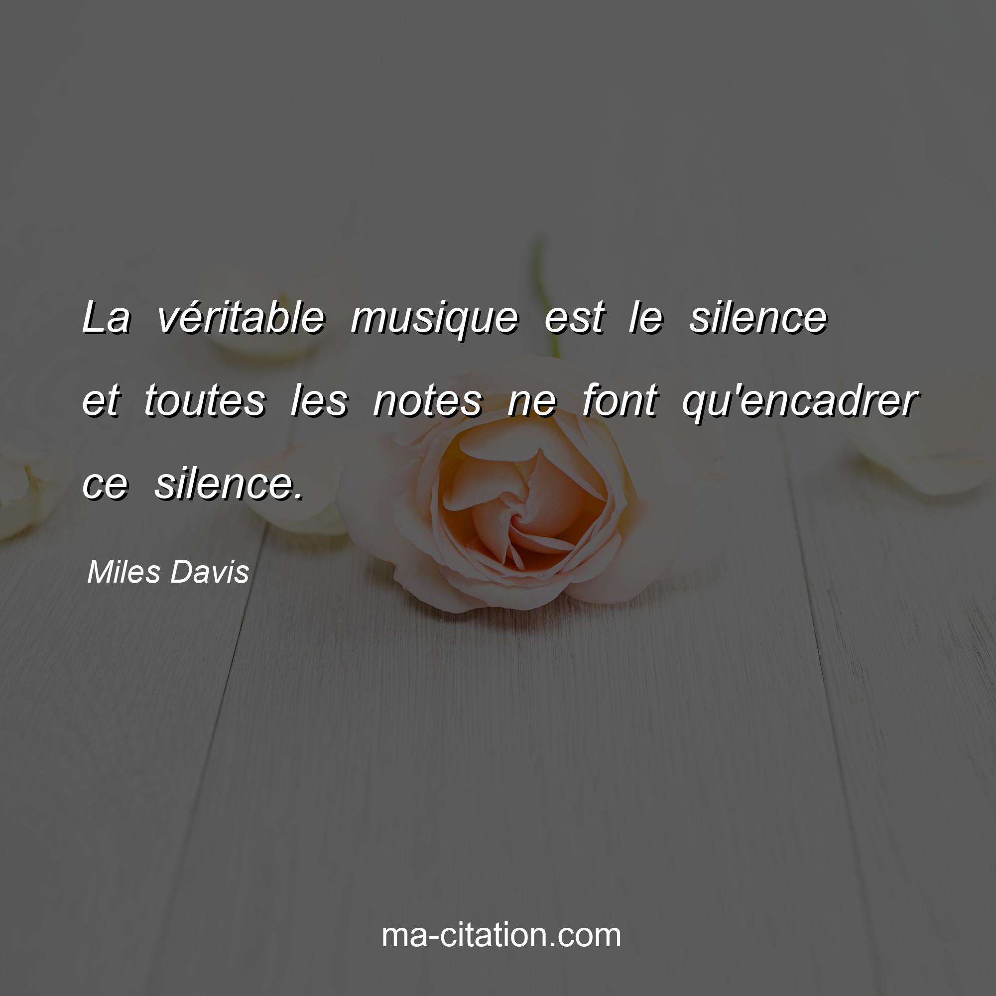 Miles Davis est l'auteur de la citation sur la vie "La véritable musique est le silence et toutes les notes ne font qu'encadrer ce silence.".