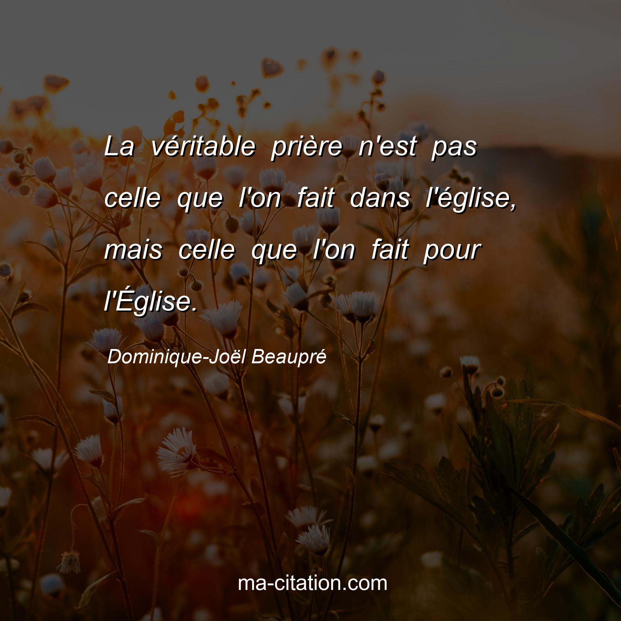 Dominique-Joël Beaupré est l'auteur de la citation sur la vie "La véritable prière n'est pas celle que l'on fait dans l'église, mais celle que l'on fait pour l'Église.".
