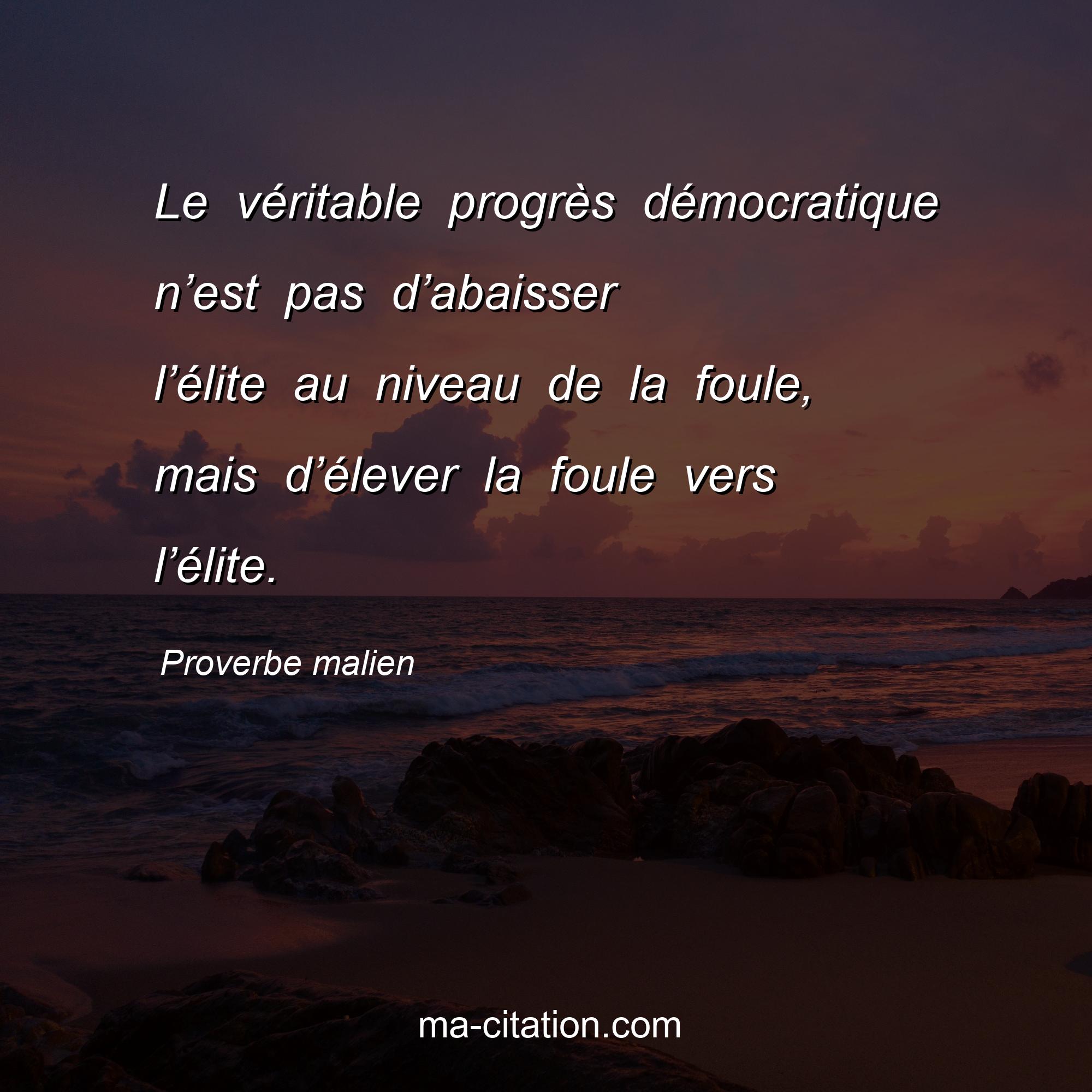 Proverbe malien sur la vie :Le véritable progrès démocratique n’est pas d’abaisser l’élite au niveau de la foule, mais d’élever la foule vers l’élite.
