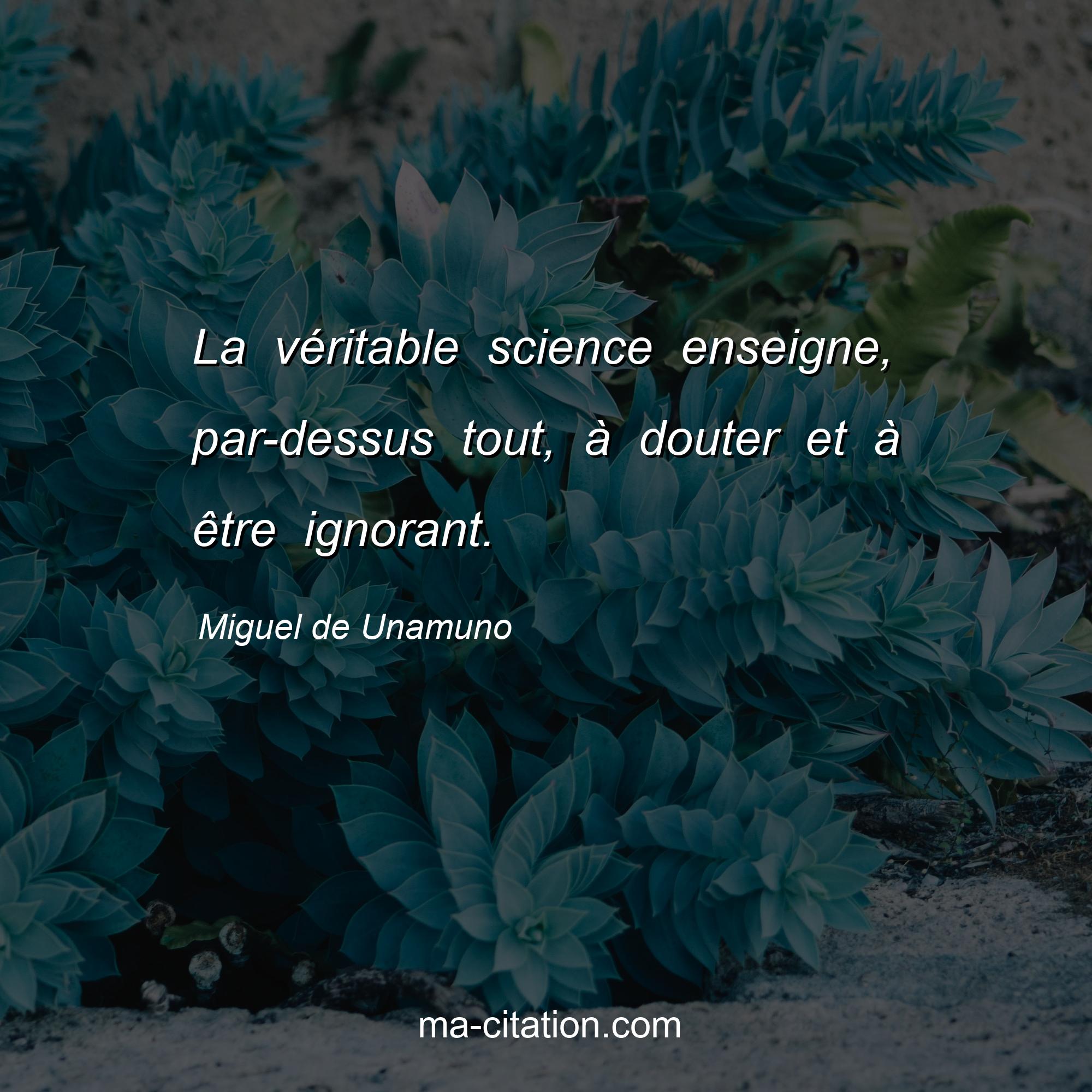 Citation sur la vie de Miguel de Unamuno :La véritable science enseigne, par-dessus tout, à douter et à être ignorant.