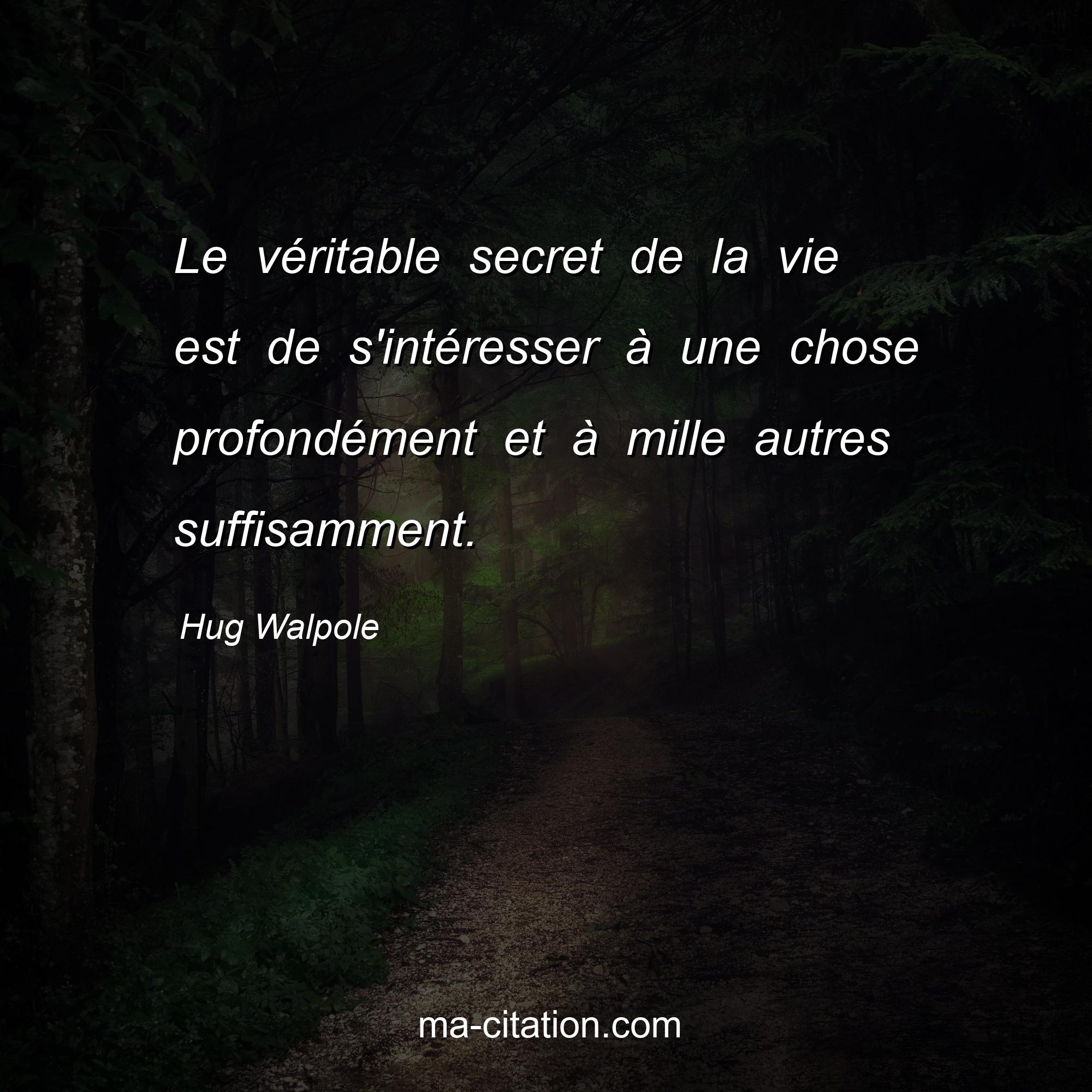 Citation sur la vie de Hug Walpole :Le véritable secret de la vie est de s'intéresser à une chose profondément et à mille autres suffisamment.