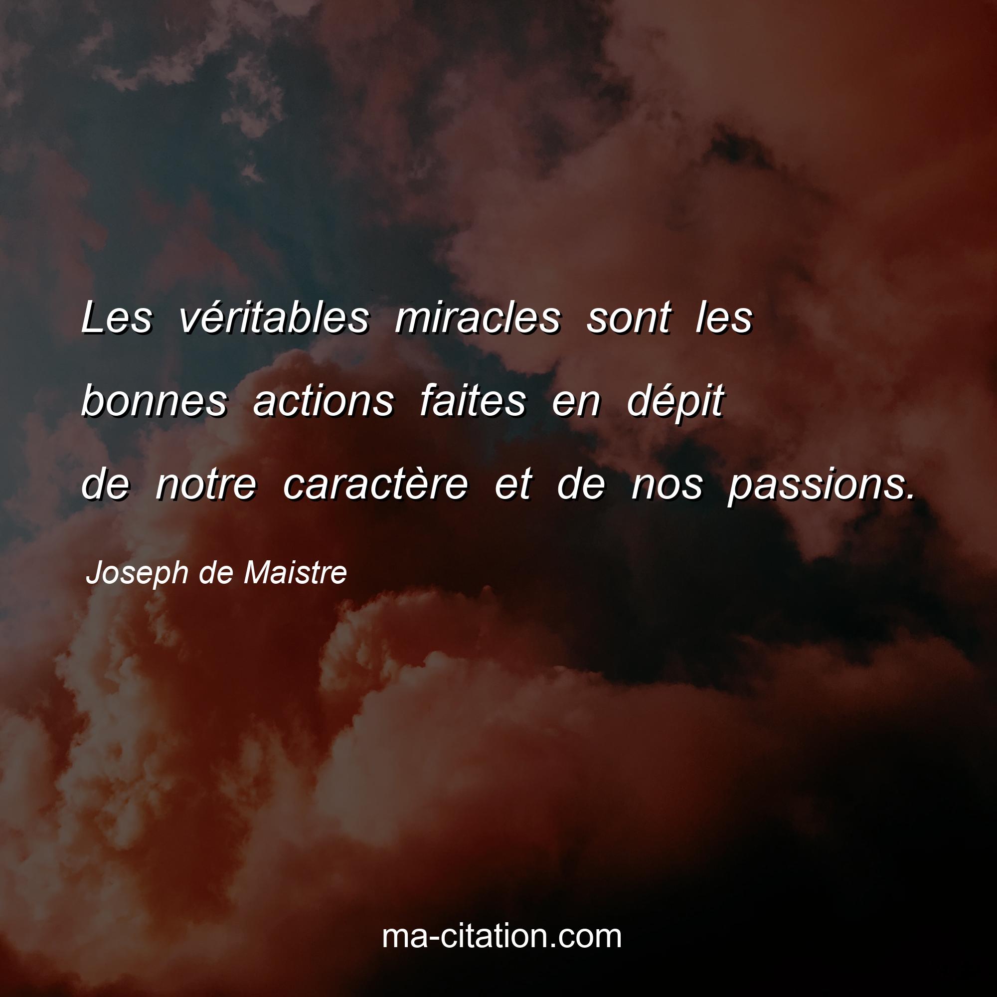 Citation sur la vie de Joseph de Maistre :Les véritables miracles sont les bonnes actions faites en dépit de notre caractère et de nos passions.