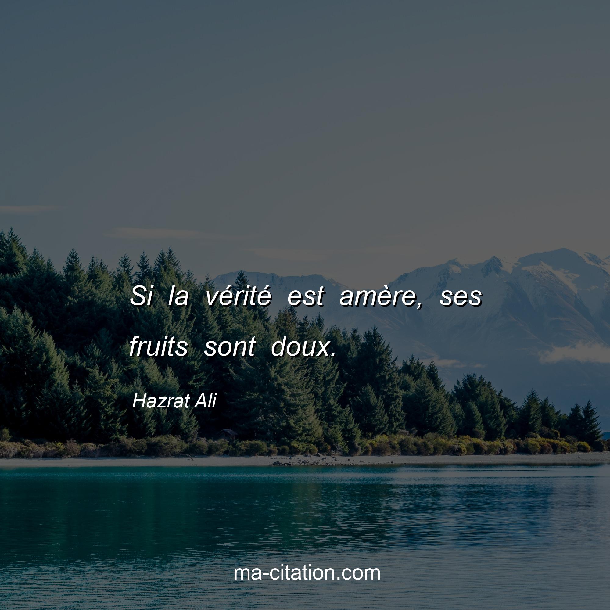 Hazrat Ali est l'auteur de la citation sur la vie "Si la vérité est amère, ses fruits sont doux.".