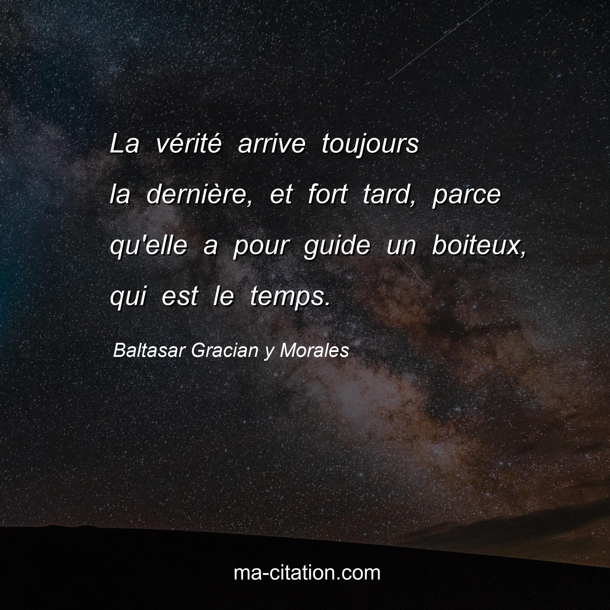 Citation sur la vie de Baltasar Gracian y Morales :La vérité arrive toujours la dernière, et fort tard, parce qu'elle a pour guide un boiteux, qui est le temps.