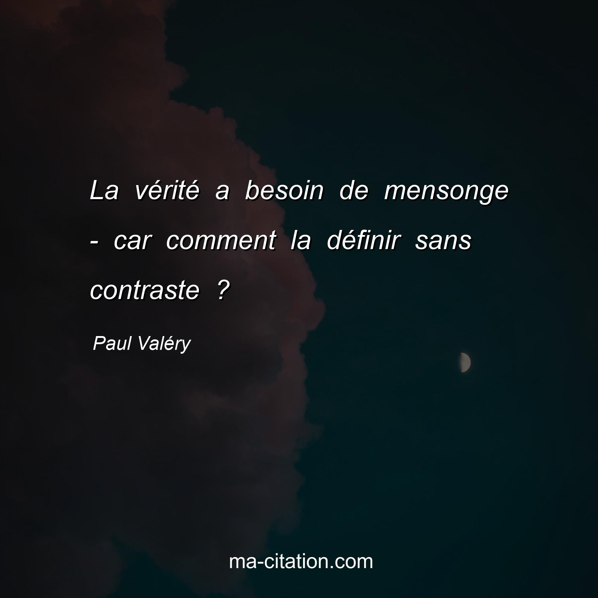 Citation sur la vie de Paul Valéry :La vérité a besoin de mensonge - car comment la définir sans contraste ?