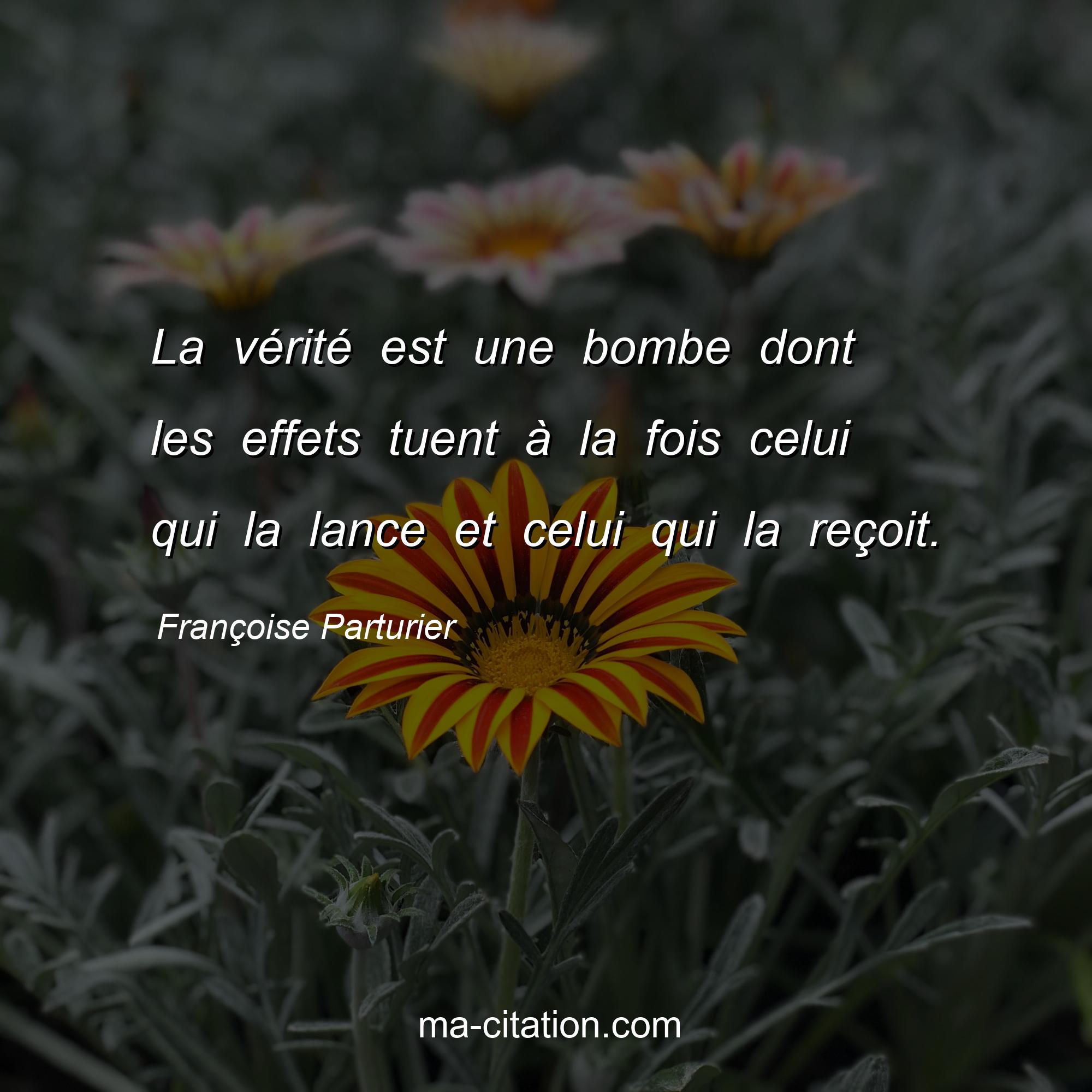 Françoise Parturier est l'auteur de la citation sur la vie "La vérité est une bombe dont les effets tuent à la fois celui qui la lance et celui qui la reçoit.".