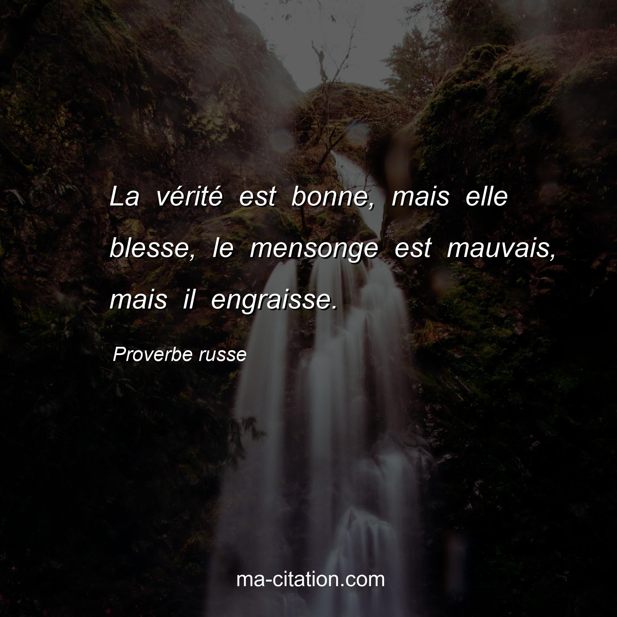 Proverbe russe sur la vie :La vérité est bonne, mais elle blesse, le mensonge est mauvais, mais il engraisse.