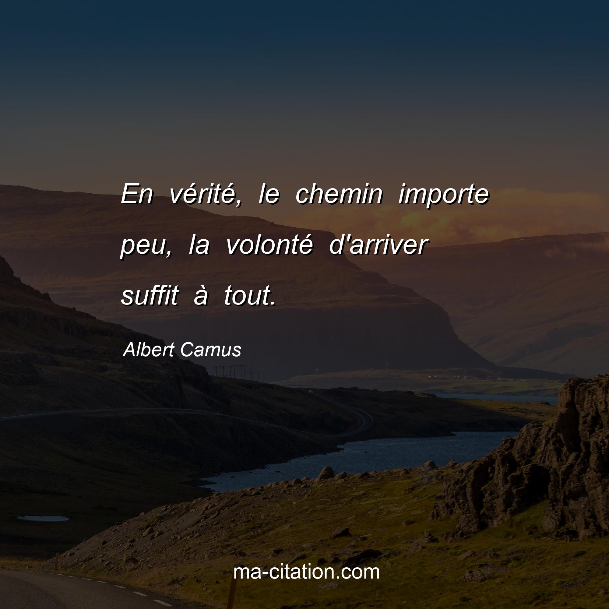 Citation sur la vie d'Albert Camus :En vérité, le chemin importe peu, la volonté d'arriver suffit à tout.