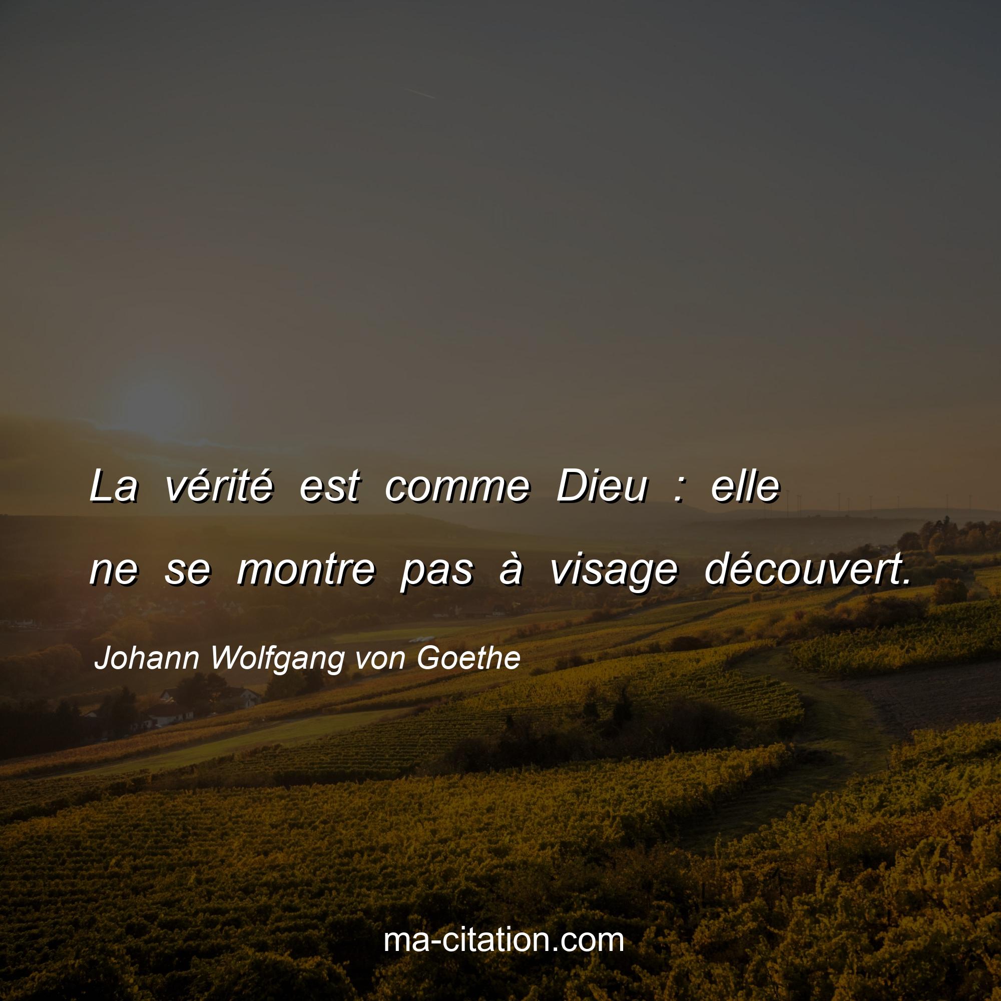 Citation sur la vie de Johann Wolfgang von Goethe :La vérité est comme Dieu : elle ne se montre pas à visage découvert.